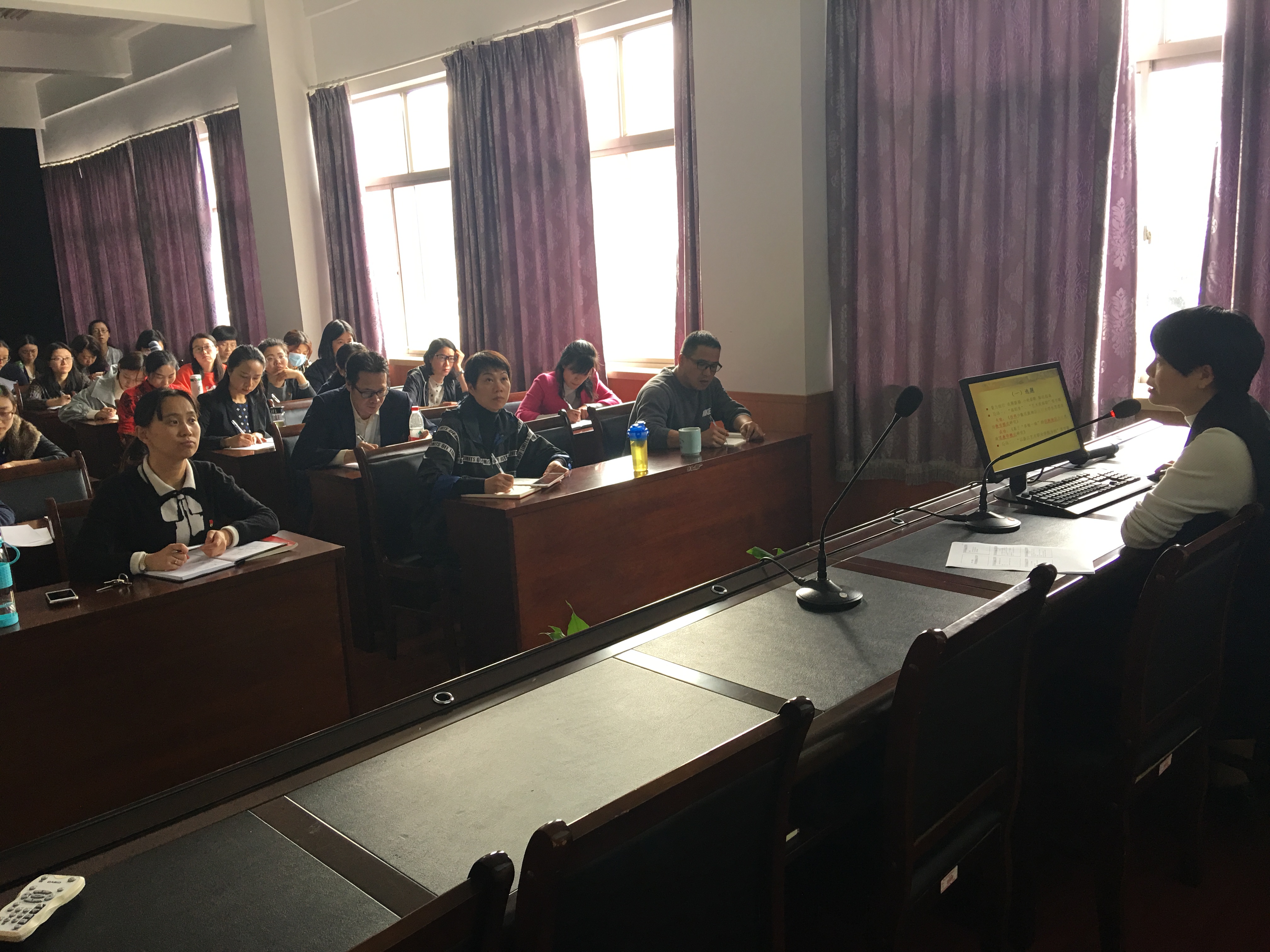 为贯彻执行习近平总书记系列重要讲话精神和中央发布的“两学一做”学习教育方案的指示要求,结合从严治党及党风廉政教育,增强党员教师对科研工作的重视,提高科研能力,提升党性修养。11月5日中午,基础部党总支组织全体党员和非党员教师,开展科研申报及经费使用培训,邀请科研处副处长吕灵芝老师主讲,作为主题党日活动内容。