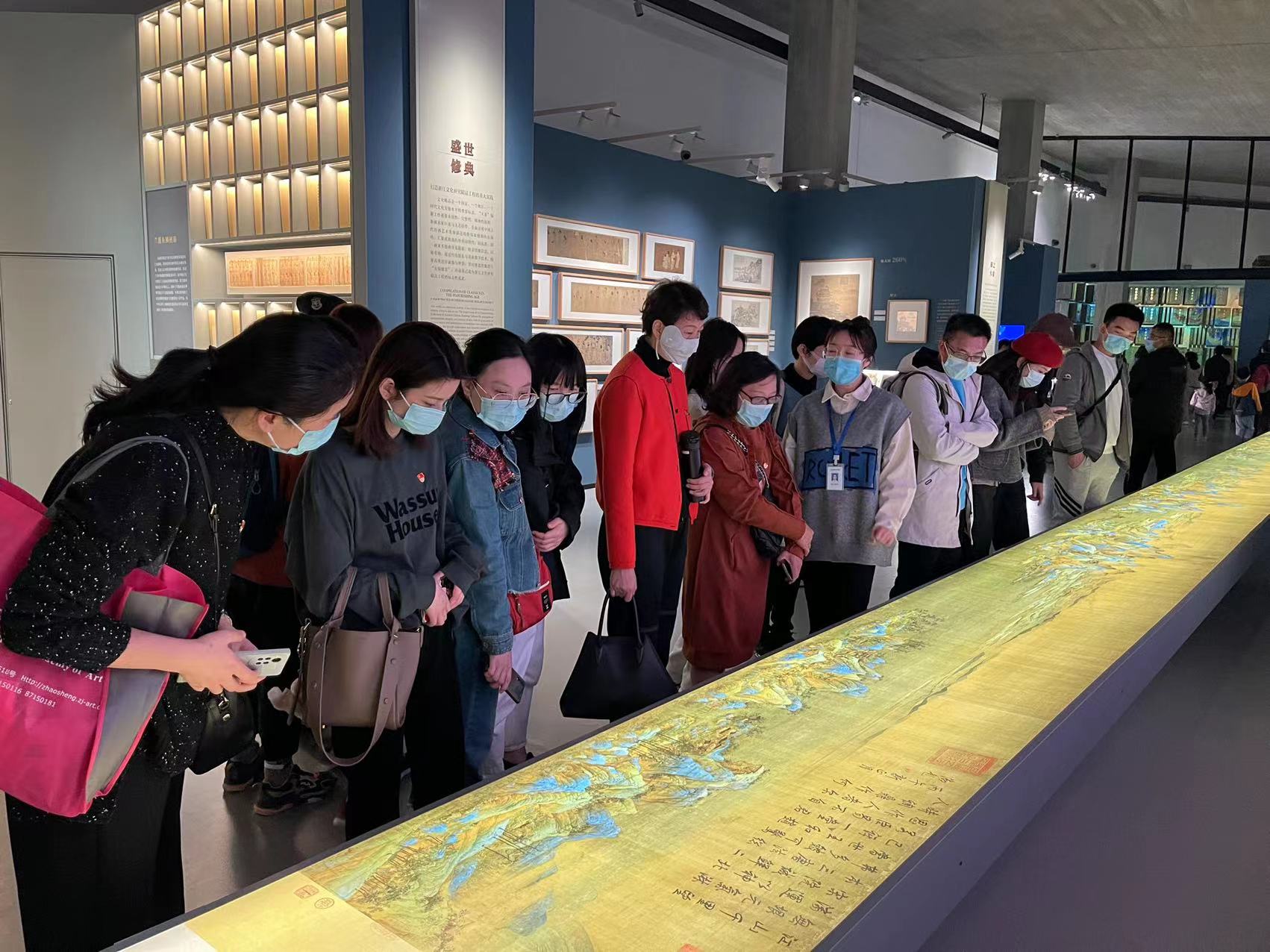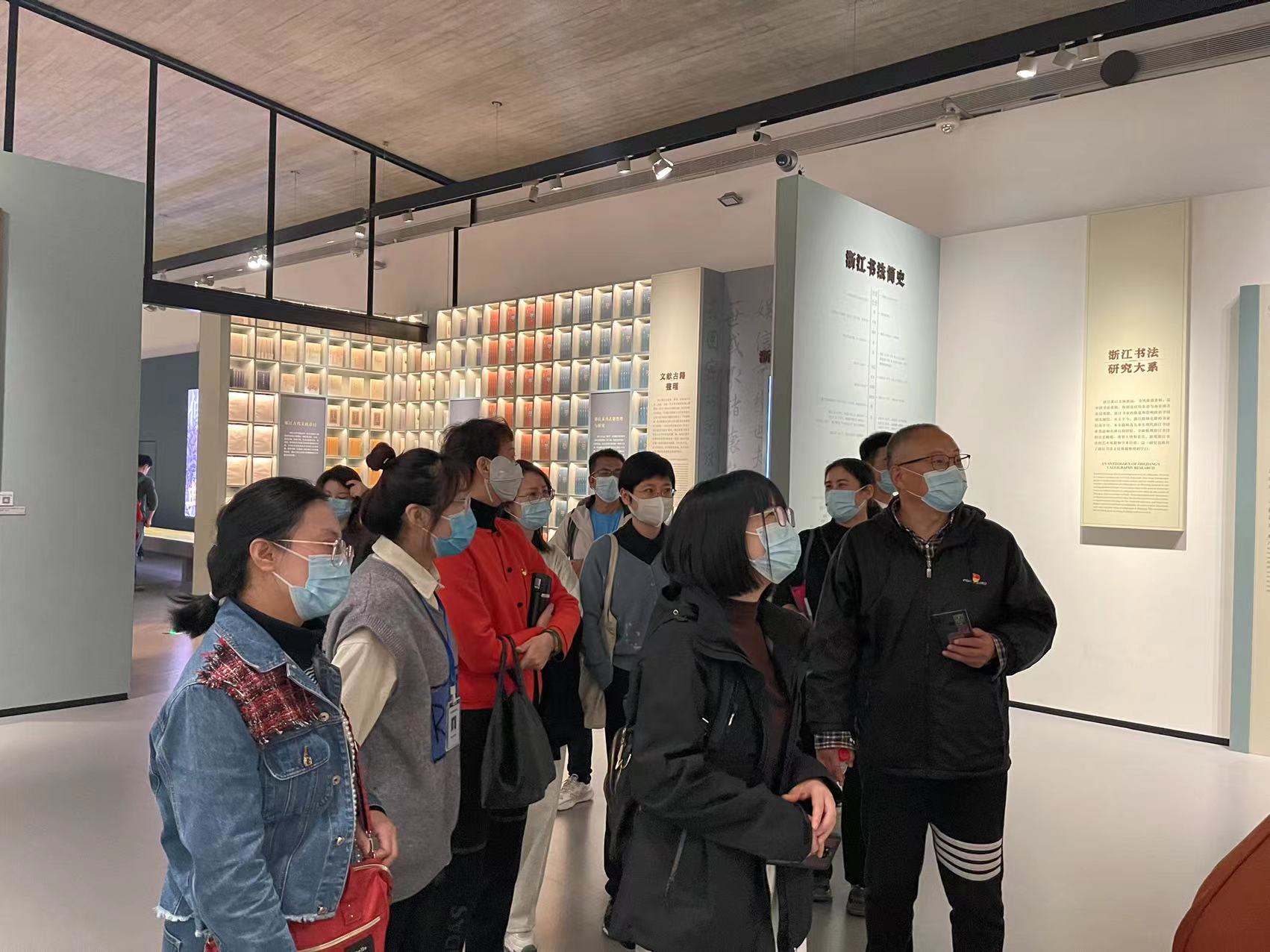 版本馆展览分为“潮起之江——‘重要窗口’主题版本展”、“文献之邦——江南版本文化概览”展、“盛世浙学——浙江文化研究工程成果展”和“千古风流——浙江历史文化名人展”四大主题。在导览员耐心的讲解下,党员老师们被历代传承中华文明的传世珍品深深吸引,从绢本诗词到山水园林,从典籍版本到中华文物,一张张历经岁月的照片,一幅幅栩栩如生的画作,一本本厚重古老的书籍,记载着世事的沧桑变迁,也让大家深刻领略到中华文化的深厚底蕴和中华文脉的时代价值,亲眼见证了“八八战略”给浙江带来的全方位、深层次、历史性的变化。