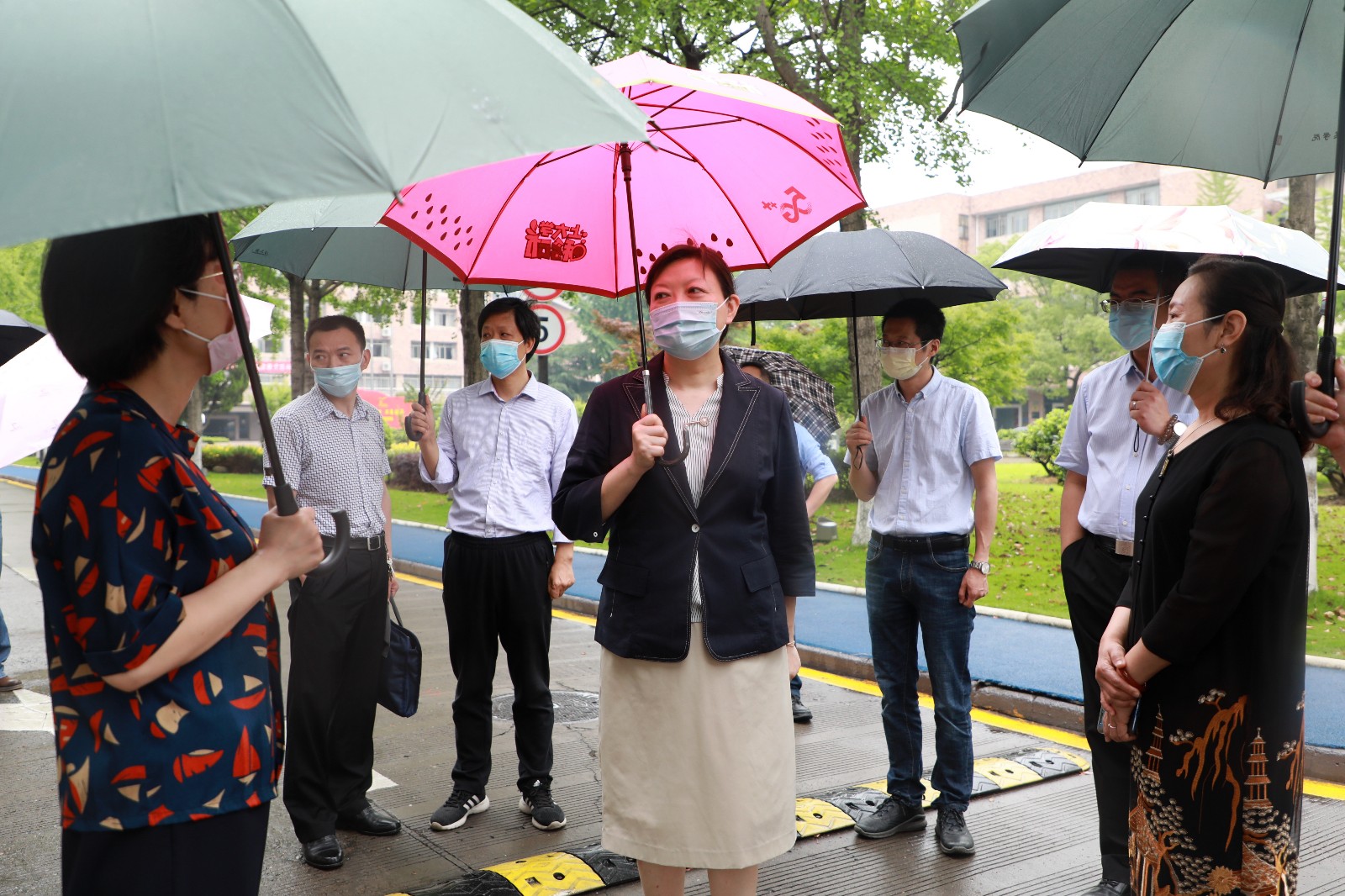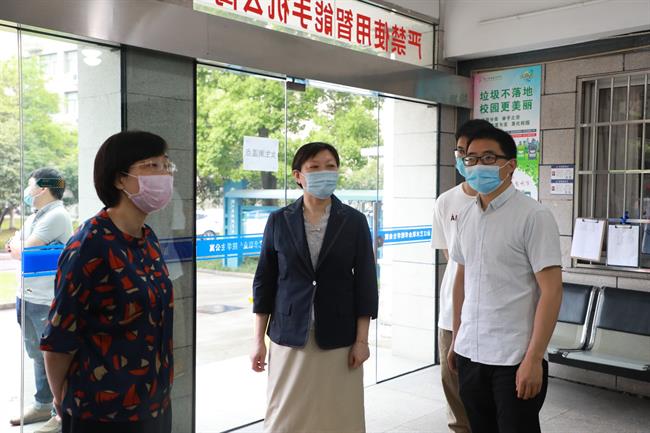 5月21日,随着我校附中、高职及五年一贯制非毕业班学生全部顺利返校复学,驻省委宣传部纪检监察组组长俞慧敏一行莅临我校检查学校疫情防控和开学复课情况。校领导、相关部门负责人陪同检查。