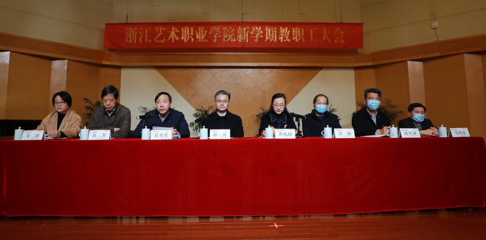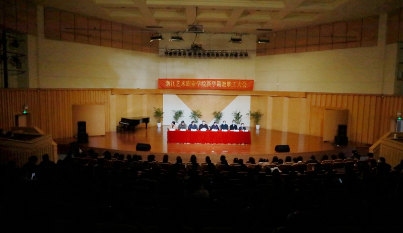 2月27日,浙江艺术职业学院新学期全体教职工大会在校音乐厅举行。校领导班子成员薛亮、黄杭娟、夏开堂、章轲、徐芳、沈军甫、支涛、马向东出席,全体教职员工参加。党委副书记、院长黄杭娟主持大会。