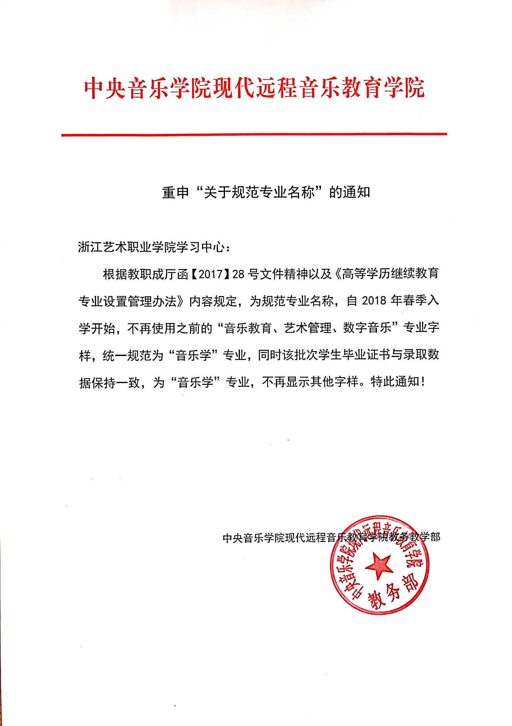 关于中央音乐学院现代远程教育学院前置学历清退的通知