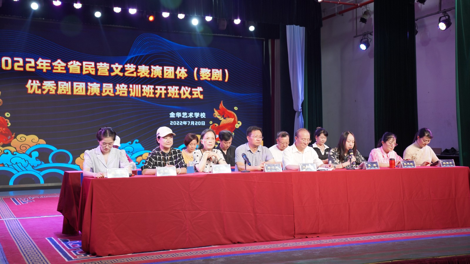 为保护与传承中华传统戏曲文化,提升民营文艺表演团体队伍建设,促进传统婺剧表演艺术的进一步发展,7月20日,由浙江省文化和旅游厅主办、浙江艺术职业学院承办的2022年全省民营文艺表演团体优秀剧团演员(婺剧)培训班在金华市开班。原金华市金东区政协主席、金东区婺剧促进会会长王瑞海,金东区政协副主席、金东区婺促会副会长郑行军,国家一级演员、中国戏剧梅花奖得主、婺剧国家级非遗传承人张建敏,浙江艺术职业学院继续教育学院院长助理陈琳出席本次婺剧培训班开班仪式。