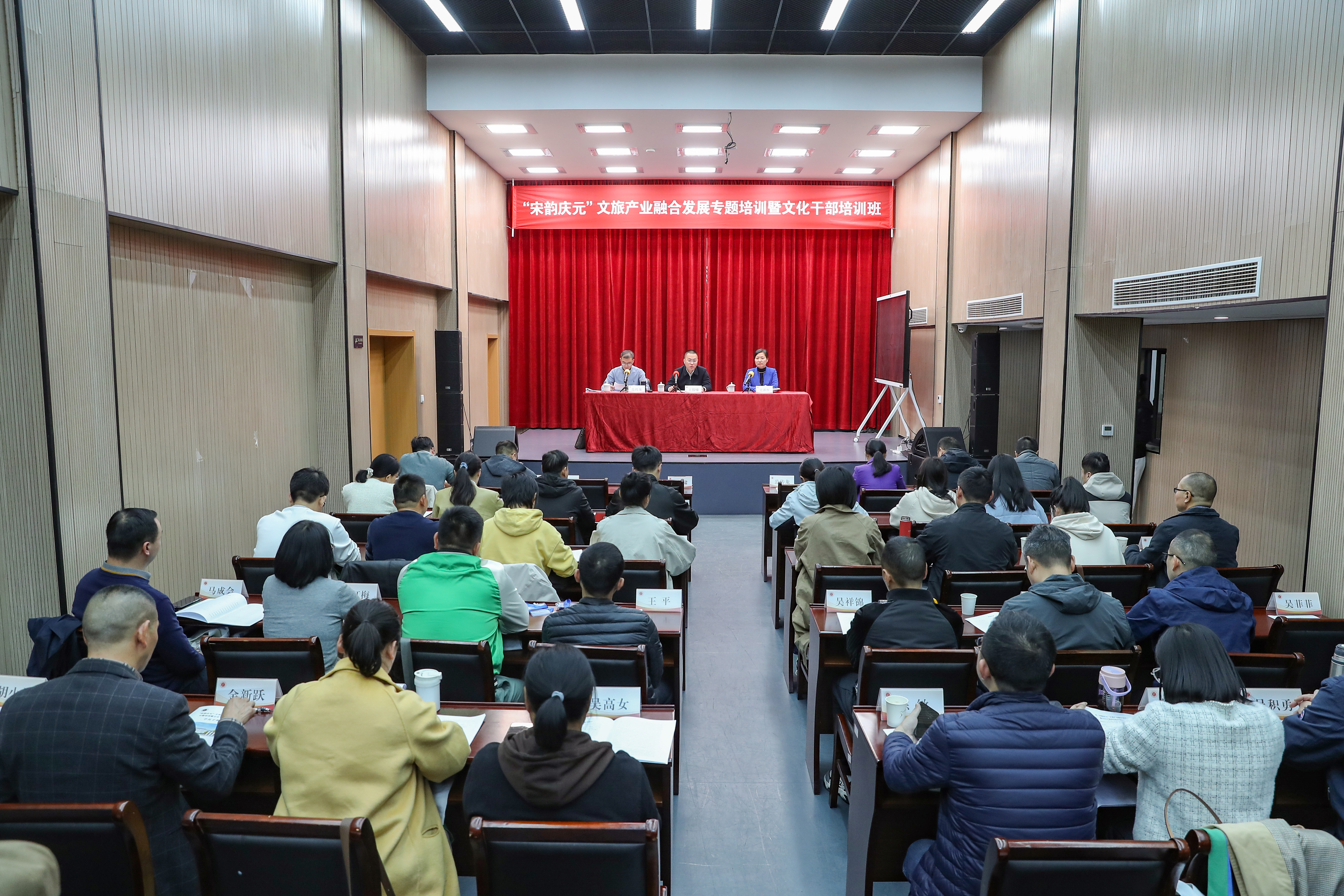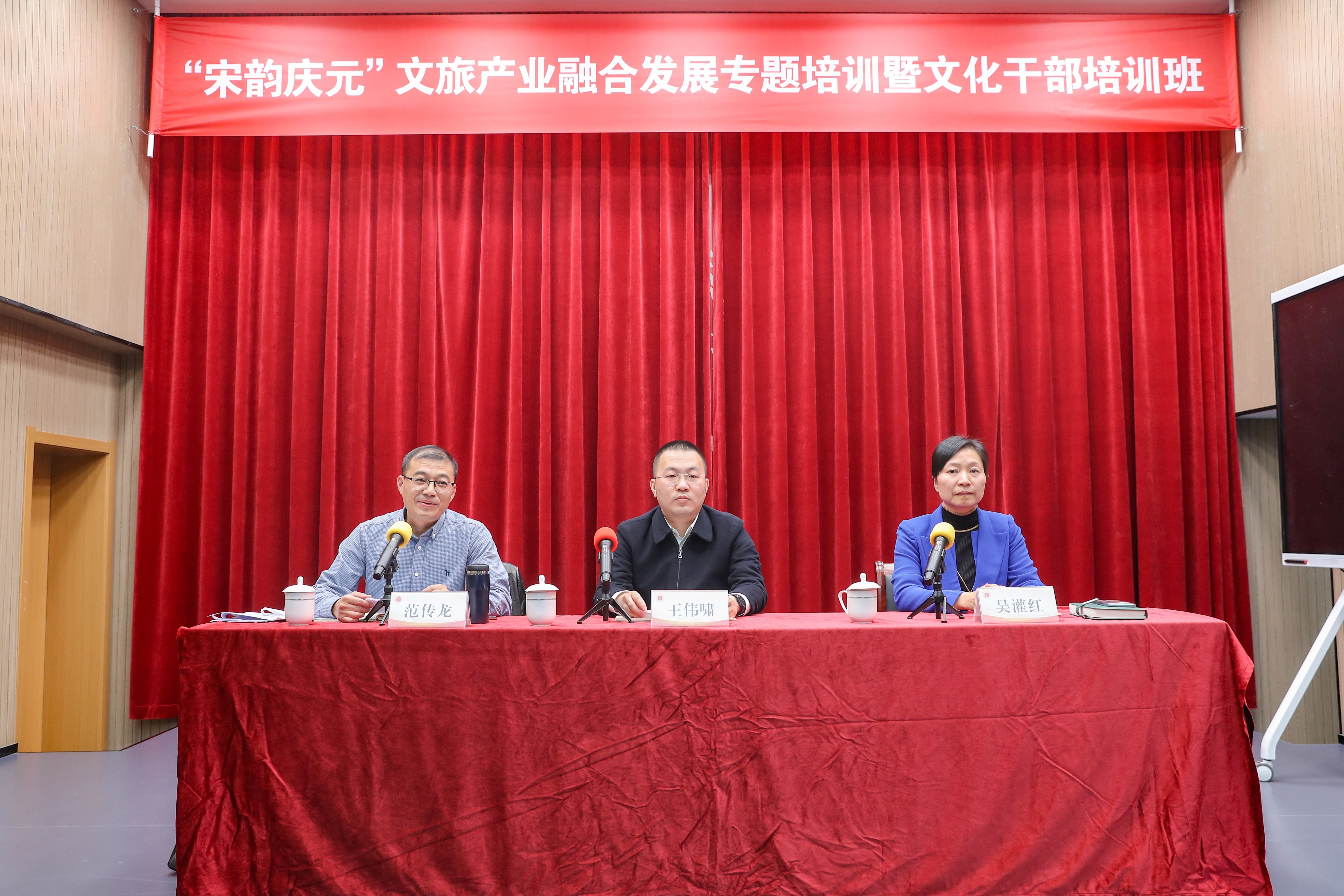 11月13日,由庆元县文化和广电旅游体育局委托浙江艺术职业学院承办的“宋韵庆元”文旅产业融合发展专题研讨班在继续教育学院开班。庆元县人民政府副县长王伟啸,庆元县文广旅体局党组书记、局长范传龙,浙艺继续教育学院党支部书记、院长吴灌红出席开班仪式,来自庆元县各相关单位文旅工作分管领导、各乡镇(街道)文旅分管领导、县文广旅体局业务工作骨干和部分旅游企业代表共计50名学员参加本次培训。