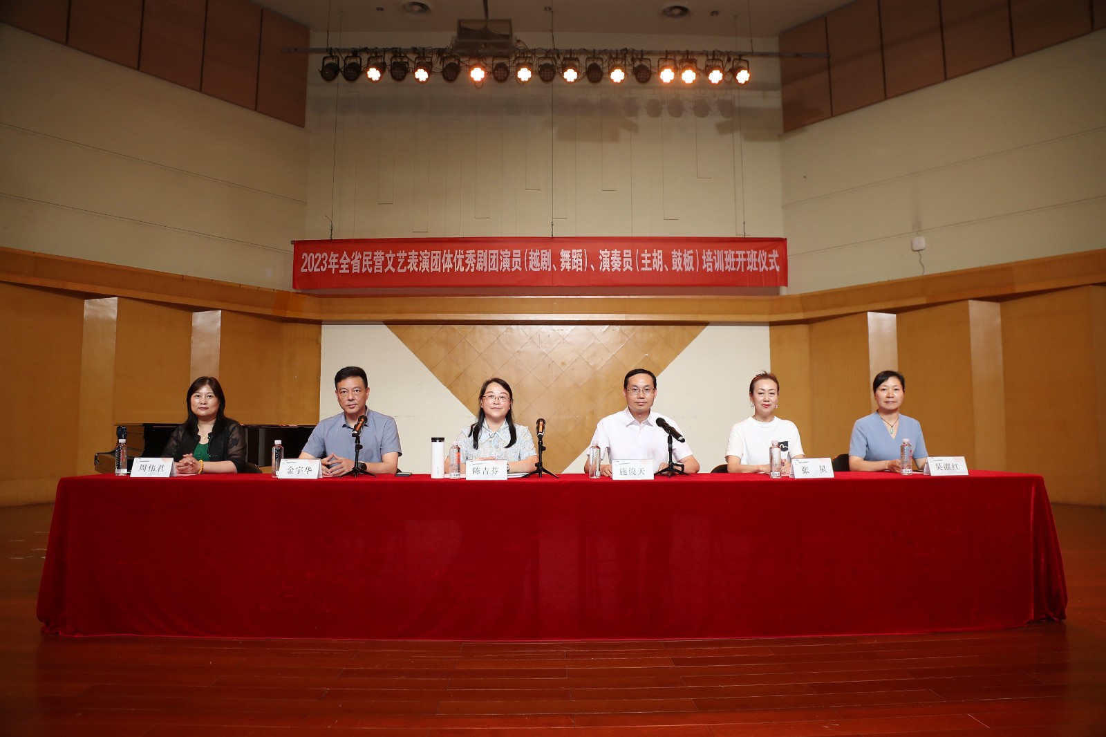 6月19日,由浙江省文化和旅游厅主办、浙江艺术职业学院承办的全省民营文艺表演团体演员(越剧、舞蹈)、演奏员(主胡、鼓板)共4期培训班如期在浙艺开班,来自全省民营文艺表演团体300余名演员、演奏员参加了此次培训。浙江省文化和旅游厅艺术处处长陈吉芬、副处长金宇华,浙江艺术职业学院院长、党委副书记施俊天,舞蹈学院院长张星,戏曲学院副院长周伟君,继续教育学院直属党支部书记、 副院长吴灌红出席了开班仪式。开班仪式由浙江省文化和旅游厅艺术处副处长金宇华主持。