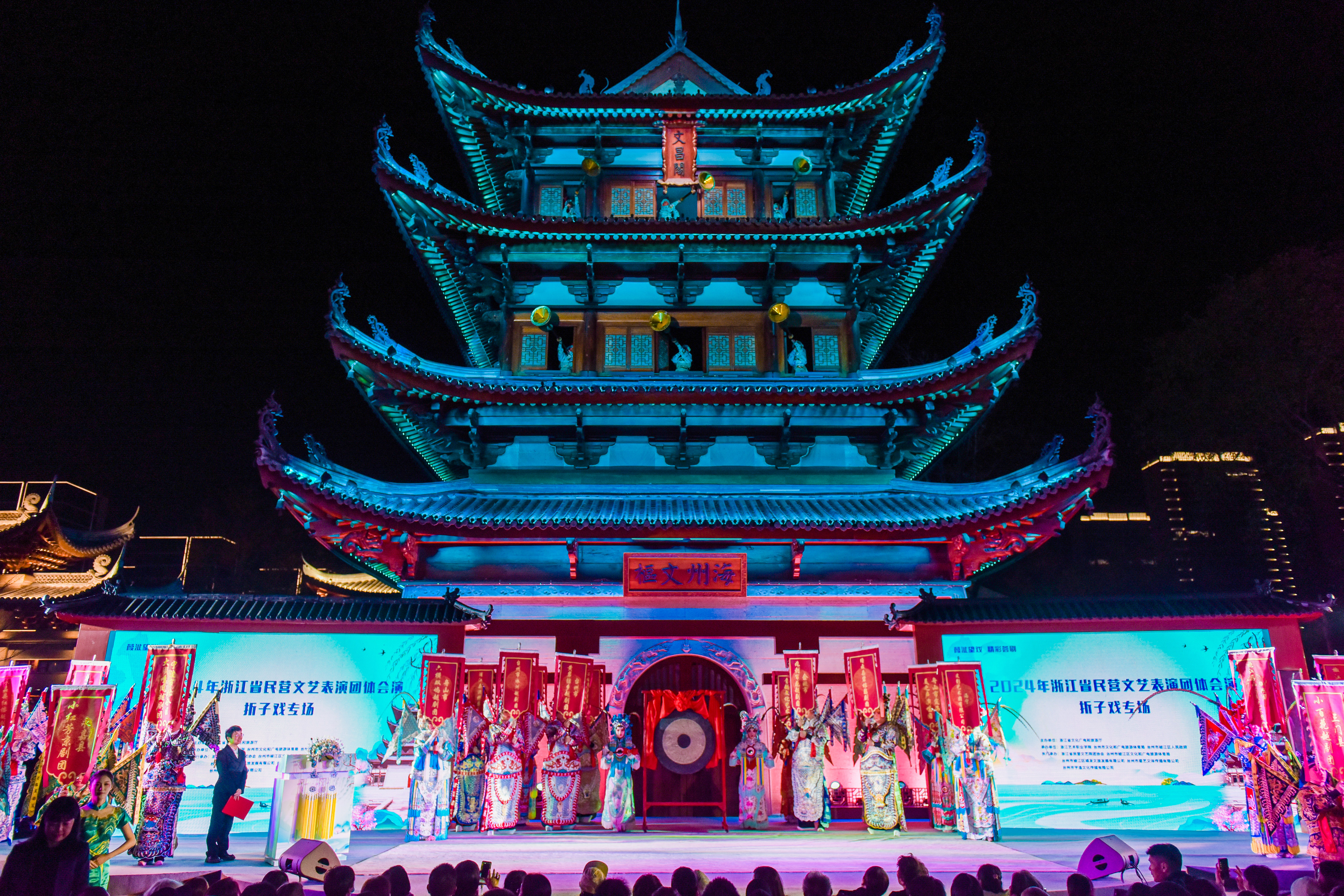 葭沚望戏,精彩荟剧。11月22日至24日,2024年全省民营文艺表演团体会演活动在台州椒江葭沚老街举办,全省11个地市的24个民营剧团入围会演,轮番展示了各自的经典折子戏,剧种涵盖越剧、京剧、永嘉乱弹、婺剧、睦剧、绍剧、瓯剧、皮影戏等,为市民观众和广大网友带来了一场精彩的传统戏曲视听盛宴。