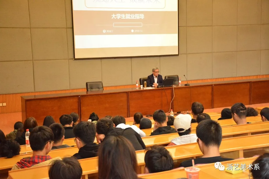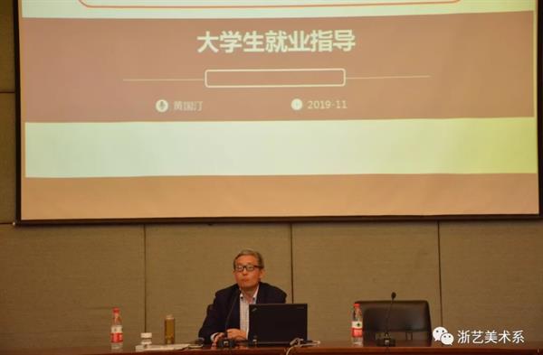 11月5日上午10点,美术系邀请了浙江省职业技能鉴定中心副主任黄国汀老师给19环艺、19服装、19广告3+2三个班级开展了《规划人生,成就未来》就业指导专题讲座。讲座现场由美术系党总支副书记、副主任孙煜珑老师主持。
