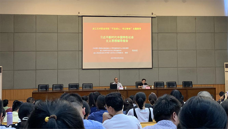 9月29日下午,学院开展“不忘初心 牢记使命”主题教育专题读书班辅导报告,由中组部干部培训基地浙江大学高级培训中心讲座教授、浙江省科学社会主义学会副会长、浙江商业职业技术学院马克思主义学院院长张国宏教授来作《习近平新时代中国特色社会主义思想辅导报告》。报告从习近平新时代中国特色社会主义思想的时代背景、主要内容、理论品格、重大意义四方面展开,阐明了习近平新时代中国特色社会主义思想是立足时代之基、回答时代之问的科学理论;这一思想是新时代中国共产党人的思想旗帜,是国家政治生活和社会生活的根本指针;这一思想为发展马克思主义作出了中国的原创性贡献,谱写了马克思主义新篇章;这一思想是中国精神的时代精华,为实现中华民族伟大复兴提供了精神力量;这一思想饱含着对人类发展重大问题的睿智思考和独特创见,为建设美好世界贡献了中国智慧、中国方案。通过学习,使全体党员干部牢牢把握本次主题教育的根本任务:“深入学习贯彻新时代中国特色社会主义思想,锤炼忠诚干净担当的政治品格,团结带领全国各族人民为实现伟大梦想共同奋斗”。
