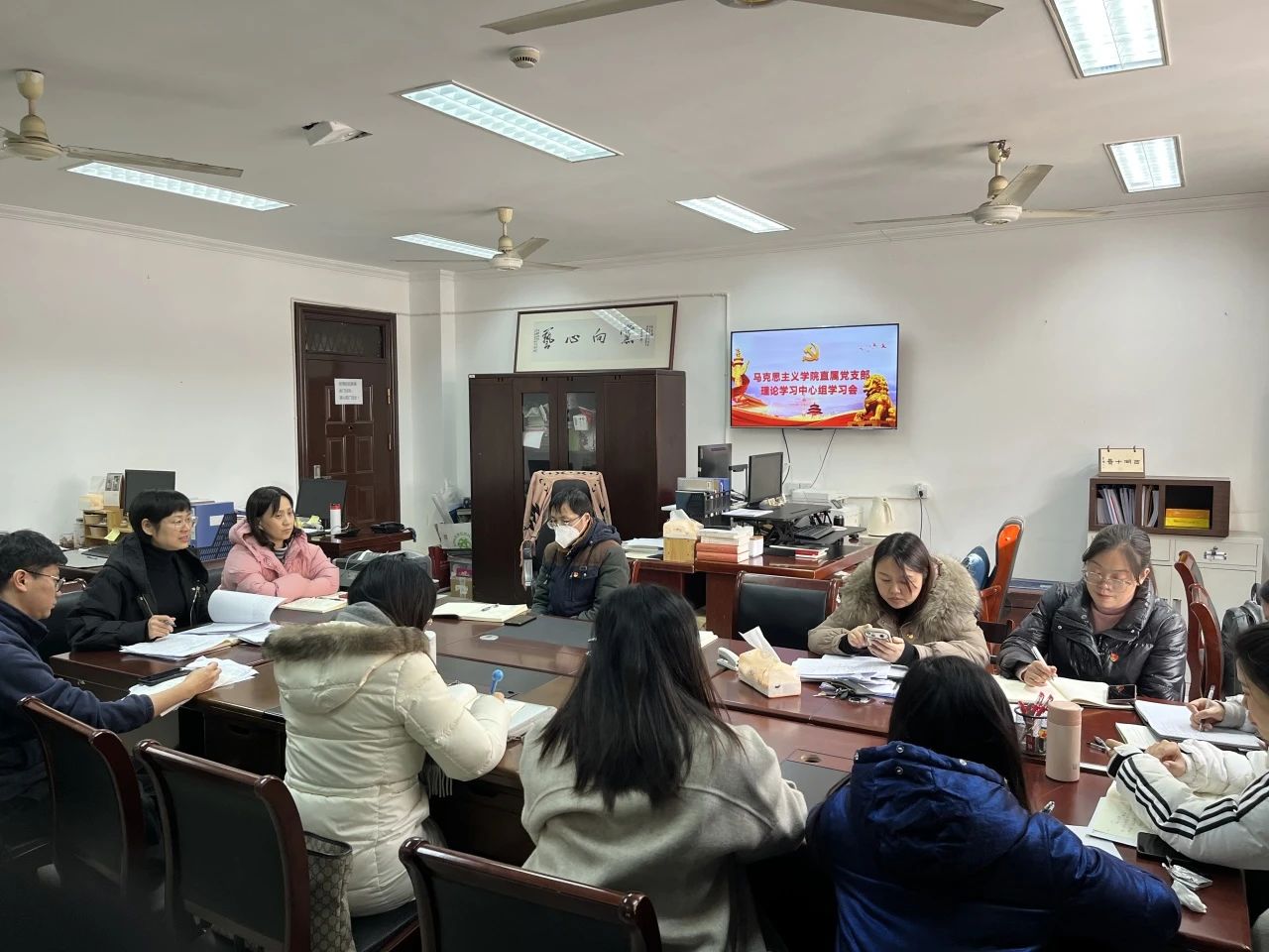 为深入学习贯彻习近平新时代中国特色社会主义思想,不断提升思想政治理论课教师的理论素养,马克思主义学院直属党支部于12月20日开展理论学习中心组扩大学习会,深入学习领会中央经济工作会议精神、习近平总书记致“良渚论坛”贺信精神和浙江省委十五届四次全会精神。支部全体党员参加会议。