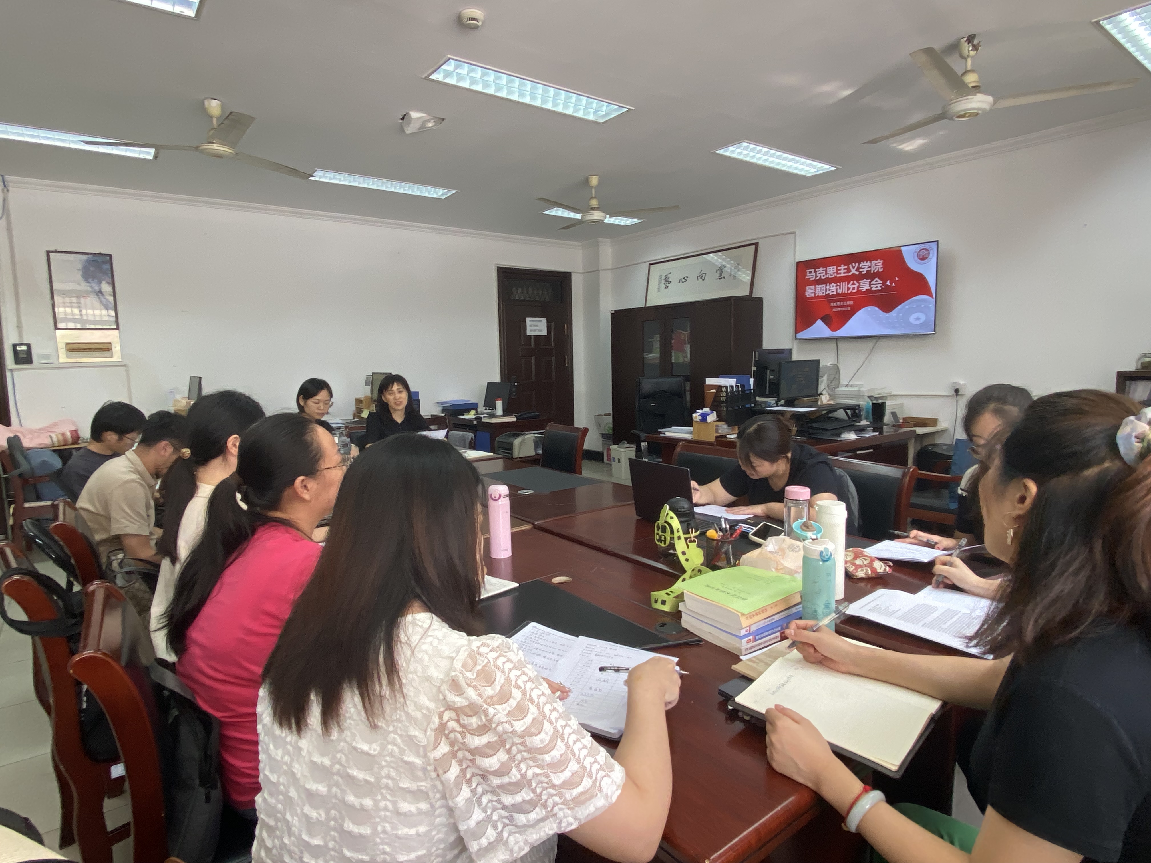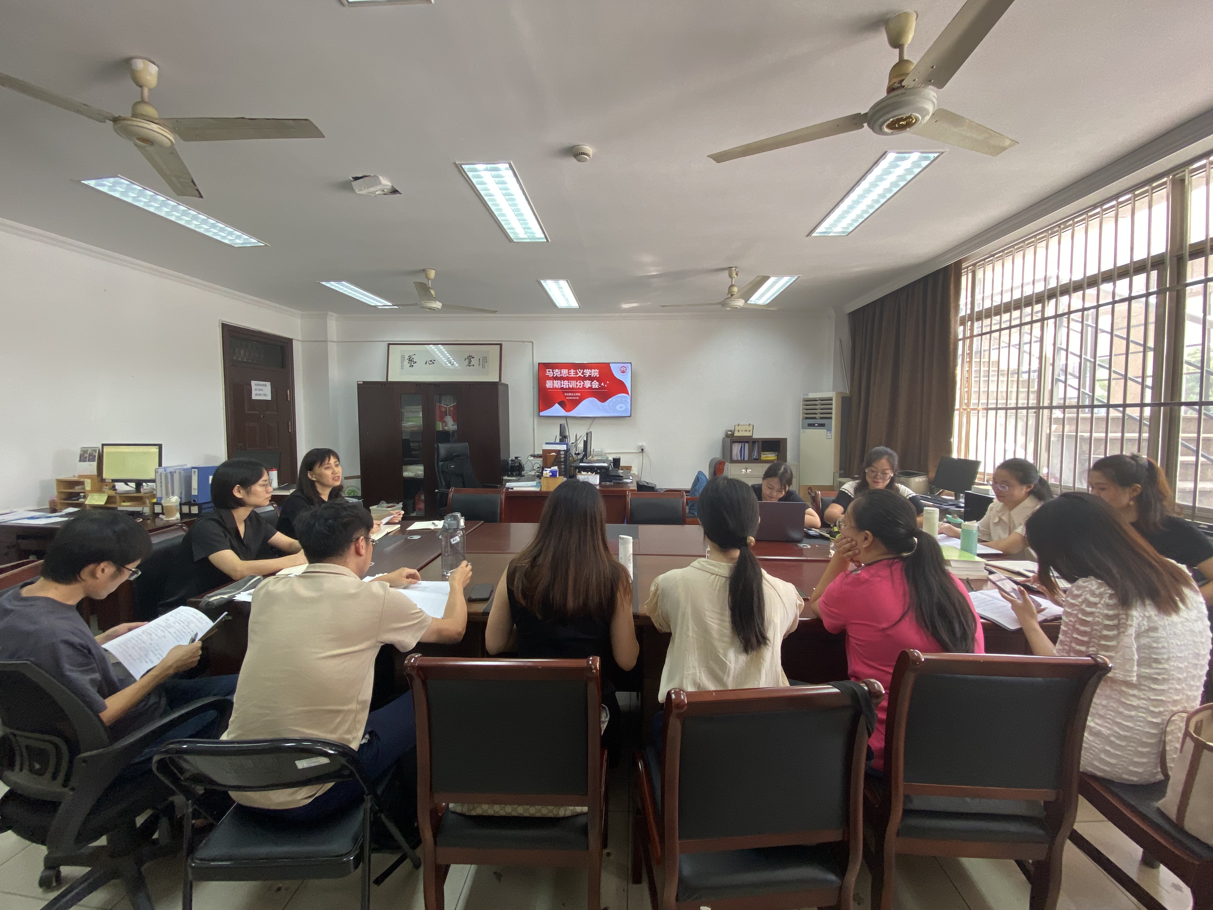 “采他山之石以攻玉,纳百家之长以厚己。”为了更好地发挥思政教师外出培训的实效性和辐射带动作用,达到一人学习,众人受益的学习效果,实现优质资源共享,促进教师专业成长,9月27日,马克思主义学院组织召开暑期培训分享会。直属马克思主义学院党支部书记、院长王筱芽,副院长胡卓群及全体思政课教师参加分享会。