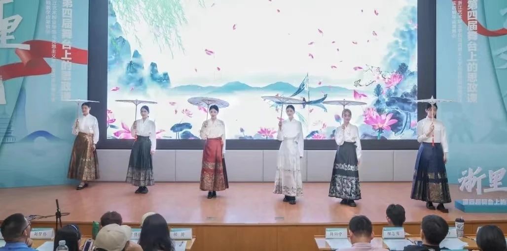 马克思主义学院第四届“舞台上的思政课”以纪念习近平总书记《在文艺工作座谈会上的讲话》10周年为契机,深入学习习近平文化思想,贯彻落实习近平总书记在文化传承发展座谈会上的重要讲话精神和对学校思政课建设作出的重要指示精神,遵循“大思政课”要善用之的理念,以“浙里文化·浙艺的思政课”为主题,以“中华文化传承发展”为主线,表达对美好生活的共同追求,推动优秀传统文化在新时代更好地传承和发展。