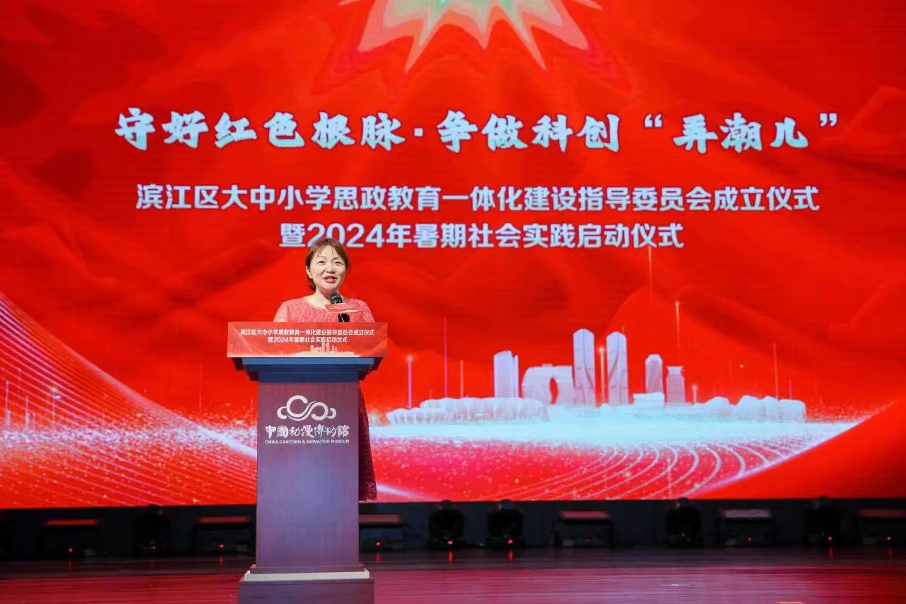 为深入学习贯彻党的二十大精神,推进大中小学思政教育一体化建设,深化五育并举,7月2日,滨江区大中小学思政教育一体化建设指导委员会成立仪式在杭州中国动漫博物馆二楼剧场举行。马克思主义学院直属党支部书记、院长王筱芽,副院长胡卓群受邀参加。