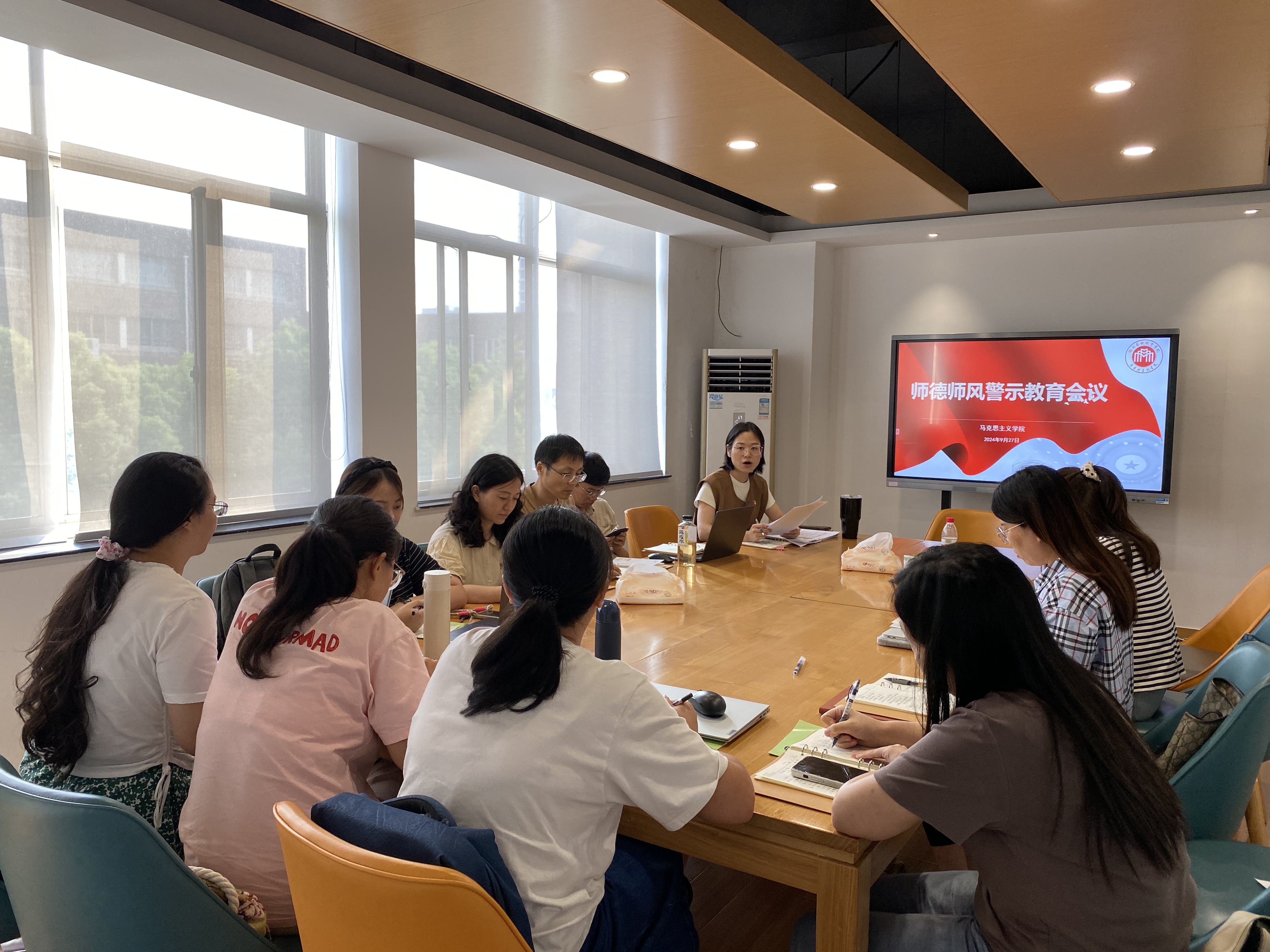 为全面加强师德师风建设,教育引导全体教师以案为鉴、以案明纪、以案促改,牢固树立底线意识,切实提高职业道德素养,9月27日下午,马克思主义学院在研讨室一召开了师德师风警示教育会议,会议由马克思主义学院直属党支部书记、院长王筱芽主持,学院全体教师参加会议。