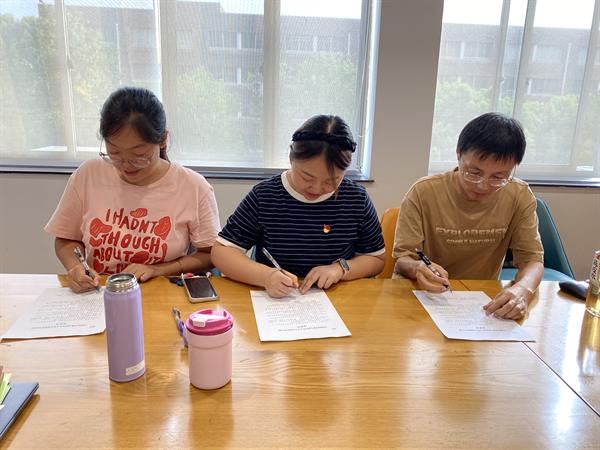 会上,全体教师认真学习了《浙江省教育厅办公室关于强调高校教师不得组织参与面向中小学生违规校外培训的通知》等文件精神,并签订承诺书。