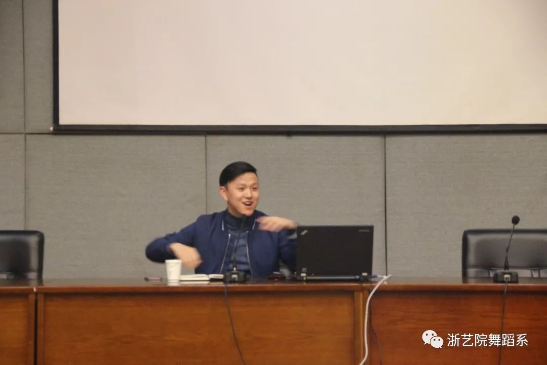 讲座期间,他用生动幽默的话语为大家营造了轻松愉悦的交流氛围。他谈到最难忘在艺校老师推荐他参加全国第九届“桃李杯”舞蹈大赛的经历,在老师们的帮助下好不容易冲进决赛,家里一个电话连忙从北京赶回温州,但是第一个去的地方居然是医院的重症病房,原来为了支持他参加比赛,家里一直瞒着爸爸病重的消息,他看到爸爸之后脑子一片空白。但是爸爸在病床前嘱咐他,坚持到底,完成比赛。考虑到爸爸治疗期间的费用困扰着王鹏,系里主动组织募捐,为王鹏家里减轻负担。王鹏又踏上前往北京集训的路上,但是临赛前,还是传来了爸爸去世的消息,家里人的支持,班里同学的鼓励,老师们强大的后盾,让他顶住压力,把所有的努力和坚持全部挥洒在赛场上,终于他的独舞《山娃鼓声》获得了中国民族舞金奖。那一刻,他完成了与爸爸的约定。