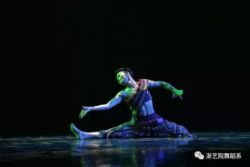 李秀博的剧目是傣族的《吉祥树》,演绎了傣文化中吉祥鸟“孔雀”与林之魂“大树”之间“灵”与“情”交融的和谐画面,一人分饰两角把对“孔雀”图腾的崇拜以及大自然天地合一的理念淋漓尽致地呈现在舞台上。