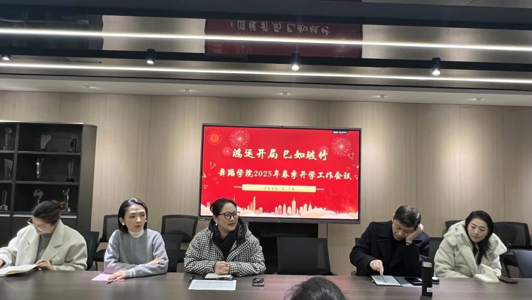 为进一步做好新学期开学工作部署,确保各项工作扎实有序开展,2025年2月14日上午,舞蹈学院在4407会议室召开新学期第一次教职工大会,全体教职工汇聚一堂,共同谋划新学期工作。会议由院长曹亮红主持。