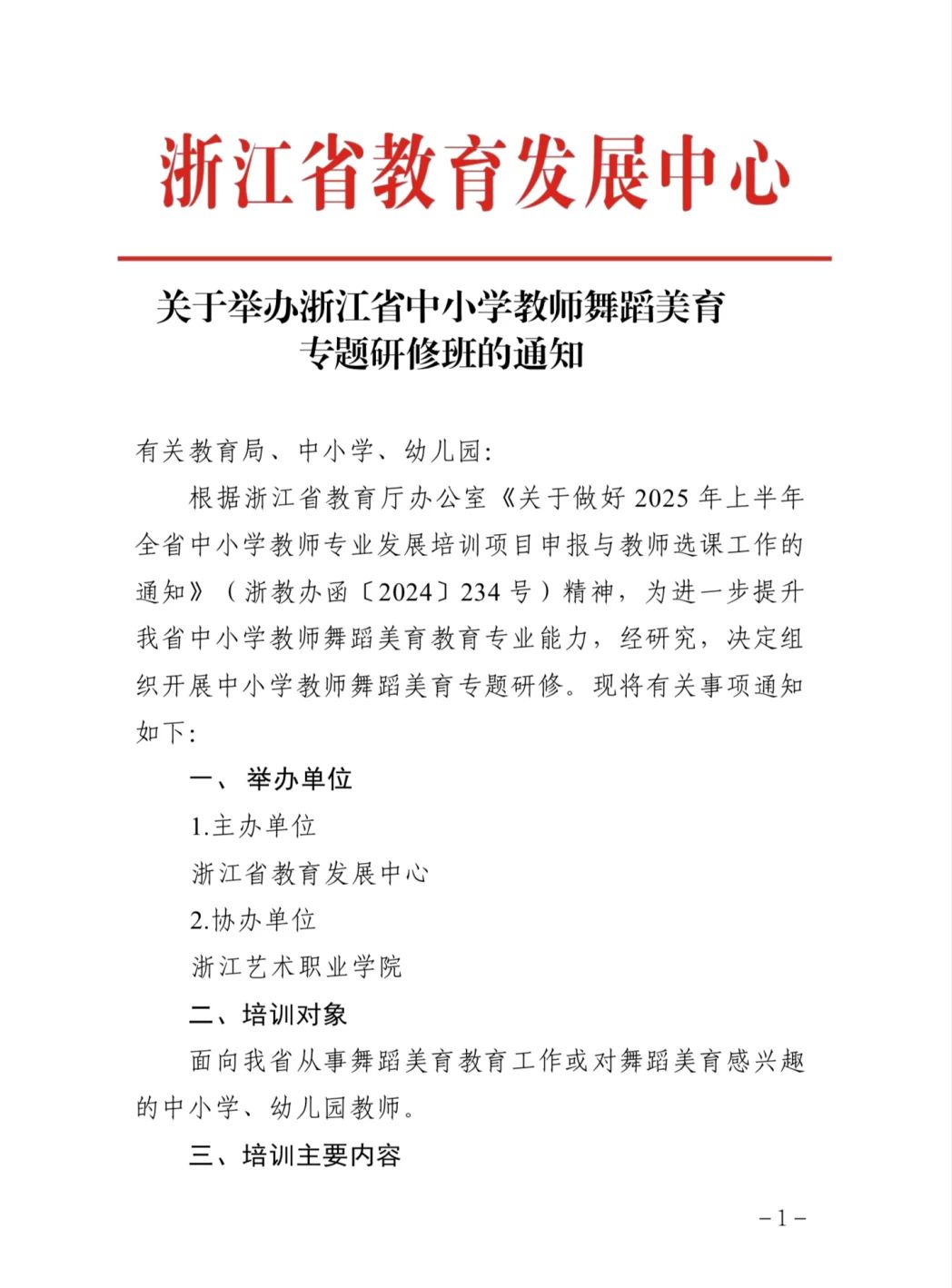 浙江省教育发展中心关于举办浙江省中小学教师舞蹈美育专题研修班的通知