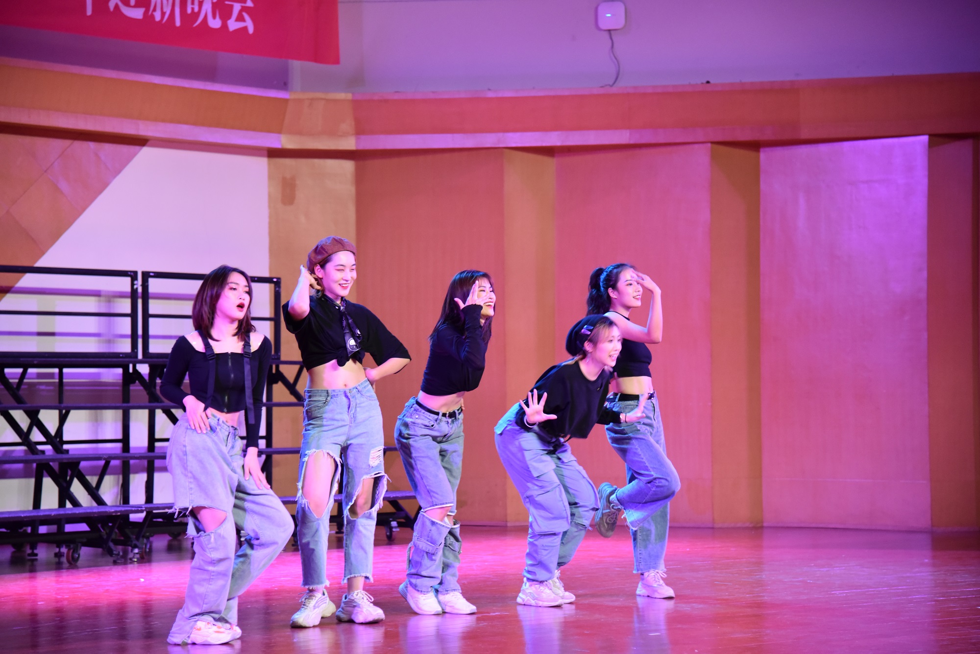 舞蹈串烧《桃花朵朵》、《change》、《dalla dalla》,三段舞蹈风格迥异,但都舞动着青春,绽放着美好。在欢乐的节奏与舞步下,现场的氛围狂热难挡。