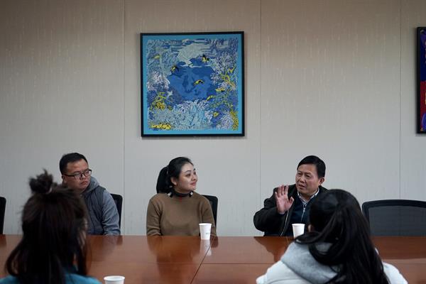 12月11日下午,文物修复与保护专业胡晶与江杰老师组织19名学生来到中国丝绸博物馆。 丝绸博物馆研究员,浙江艺术职业学院文管系文物修复与保护专业特聘专家汪自强老师亲自来带领大家参观。