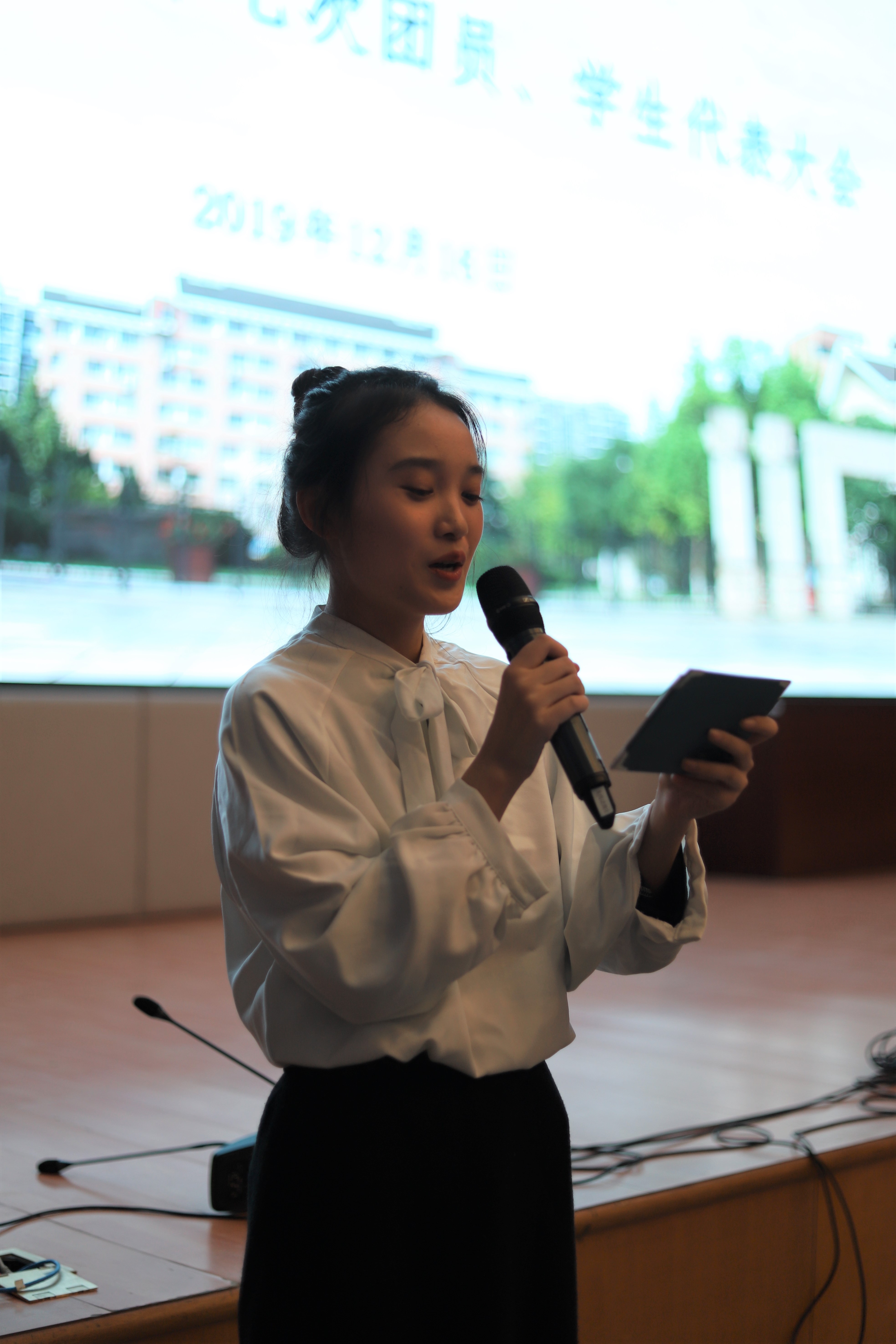 郑吟向大会致开幕词,对文化管理系第十七次团员、学生代表大会的召开表示祝贺,同时对文化管理系团学在过去一年里所作的工作表示肯定,也给予更高的期望,提出了更高的要求。