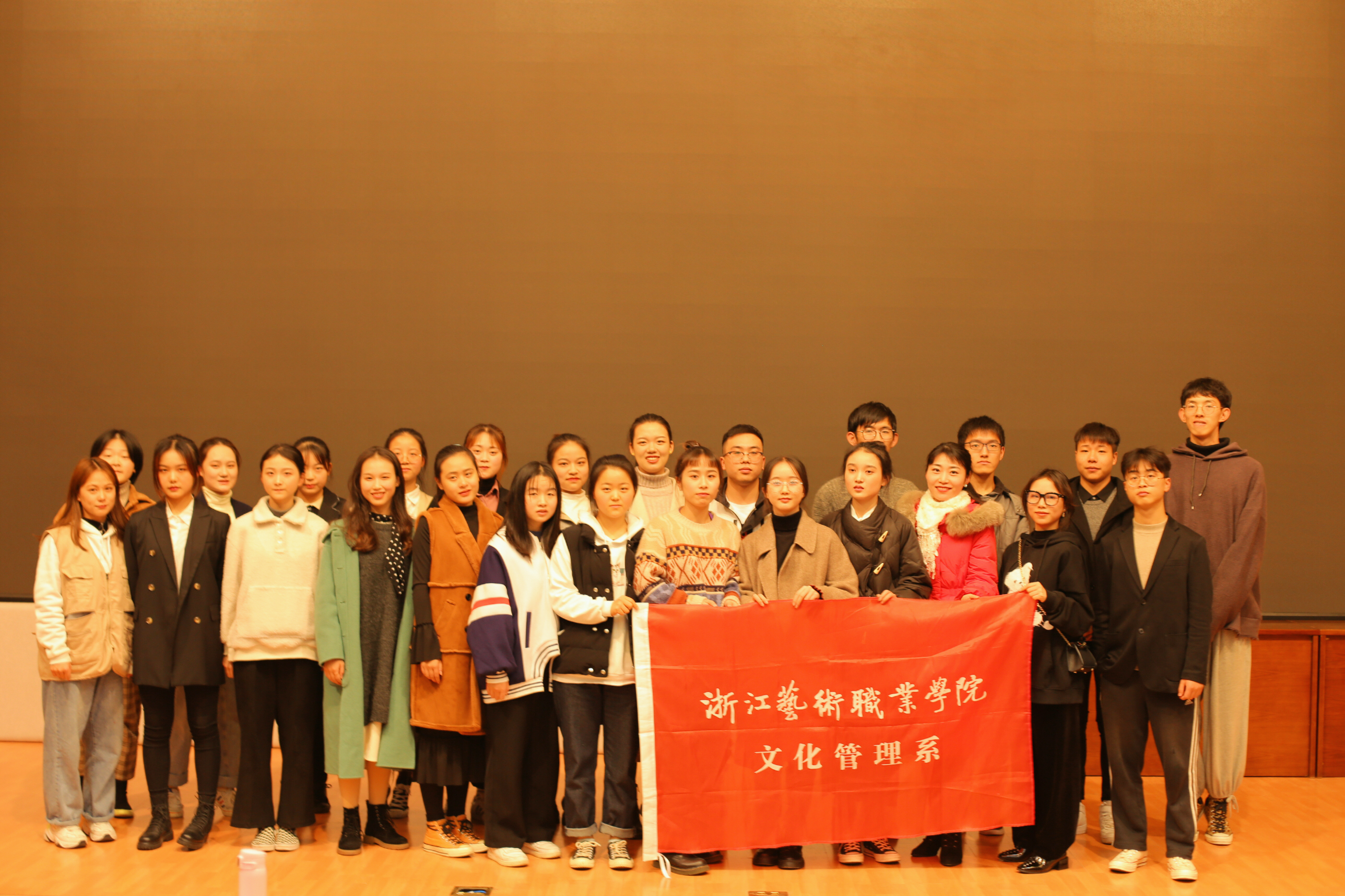 最后,金银琴宣读了大会选举产生的25位文化管理系第十七届团学委员会委员名单。随着铿锵激昂的团歌声,大会顺利闭幕。文化管理系第十六届、十七届团学合影留念。