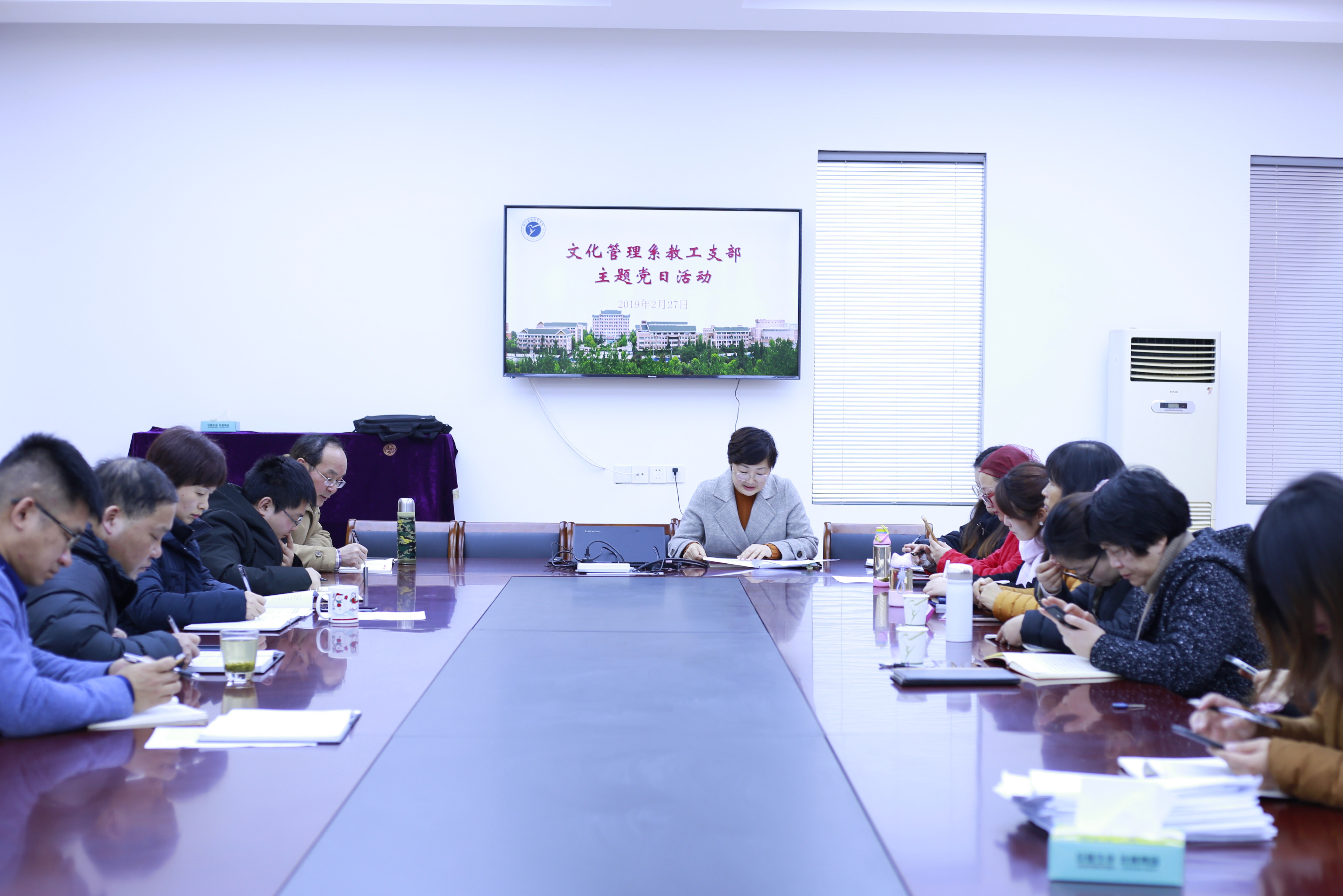 2月27日下午,文化管理系党总支围绕学校第二次党代会精神在13501会议室召开主题党日活动。文管系全体教师党员参加活动,活动由系教工支部书记李卉主持。