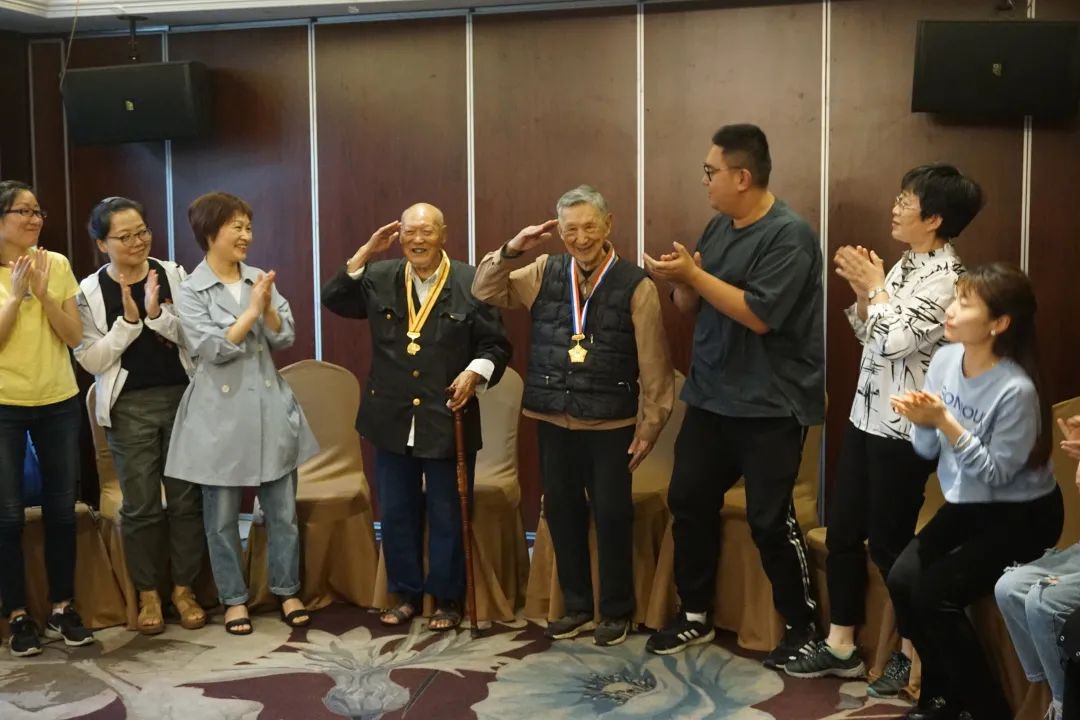王老和胡老勉励在座的大学生党员们,未来是属于年轻人的,希望大家不忘初心,把我们的祖国建设得越来越好。党员师生和两位抗战老兵一起合唱《我和我的祖国》,共同高歌赤诚爱国心。