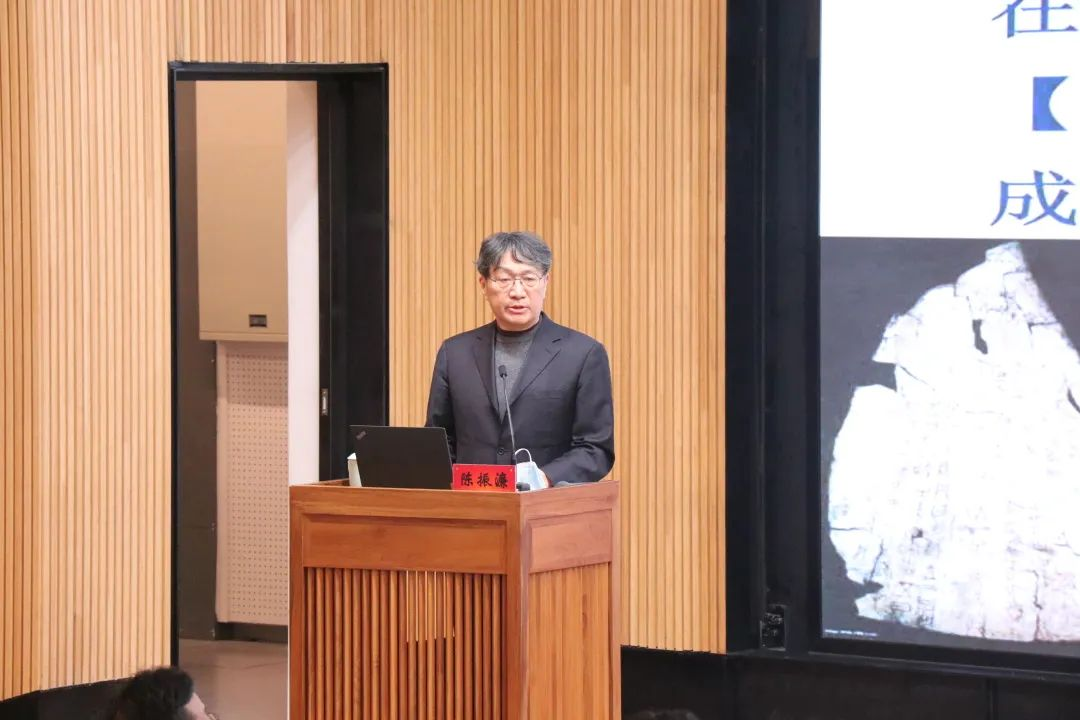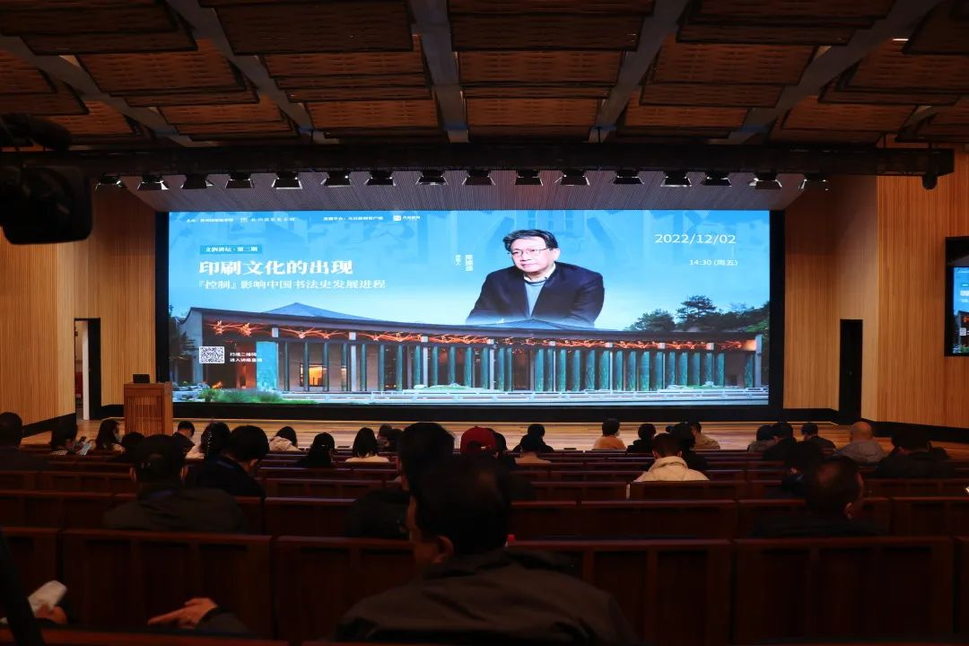 印刷文化与中国书法的关系密切同时也与版本历史紧密关联。陈老师以通俗易懂、喜闻乐见的方式讲述印刷术的历史,分别从隋唐、五代、两宋时间节点为切入口对印刷术发明之初的书法环境进行追溯,并提出印刷术自唐初萌,两宋大盛;科技发展决定文化史、艺术史发展的方向与节奏;宋代印刷术对字体书体的确立、构画形成压倒性技术优势;印刷术正楷字的"垄断"与覆盖孕育产生真正的创作意识与实践等原创性观点。其言论赢得掌声雷吗,师生们也表示了对陈老师深深的敬佩,认为不虚此行,受益良多。