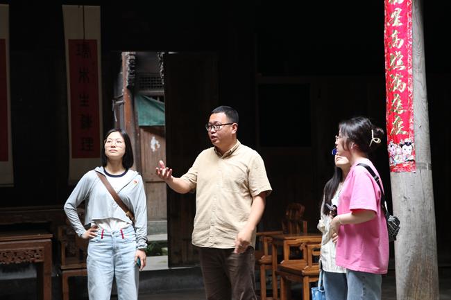 活动开始前,“深澳百匠艺术文化村项目”发起人宋凯带领同学们参观古村落,感受文化古村魅力。深澳古村是申屠家族的血缘村落,是桐庐一带的江南古村,因其庞大的古建筑群、独特的地下水系、深厚的宗族文化和浓郁的民俗风情而闻名。近年来,深澳村坚持以“明清古建筑群”为肌理,“地方民俗文化”为特色,“美丽田园风光”为底板,深度挖掘古村落资源,加快盘活闲置资产,突出“古风古韵”,着力打造“百匠创客街区”,探索资源转化富民之路,实现“村美”与“民富”的有机统一。