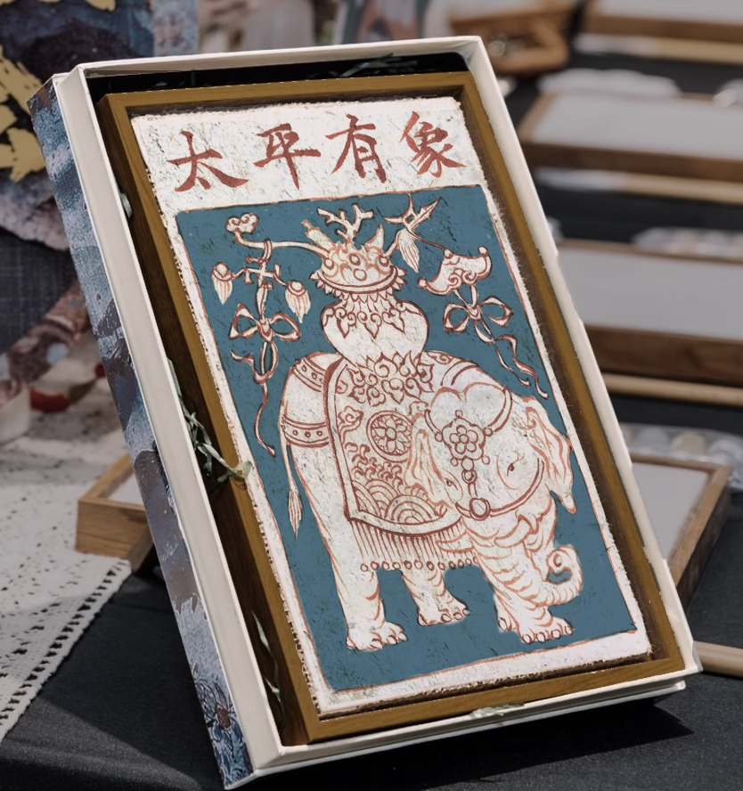 “幻壁游廊”说:作品是可移动的壁画艺术,可挂墙可置案,如同一个流动的画廊空间。