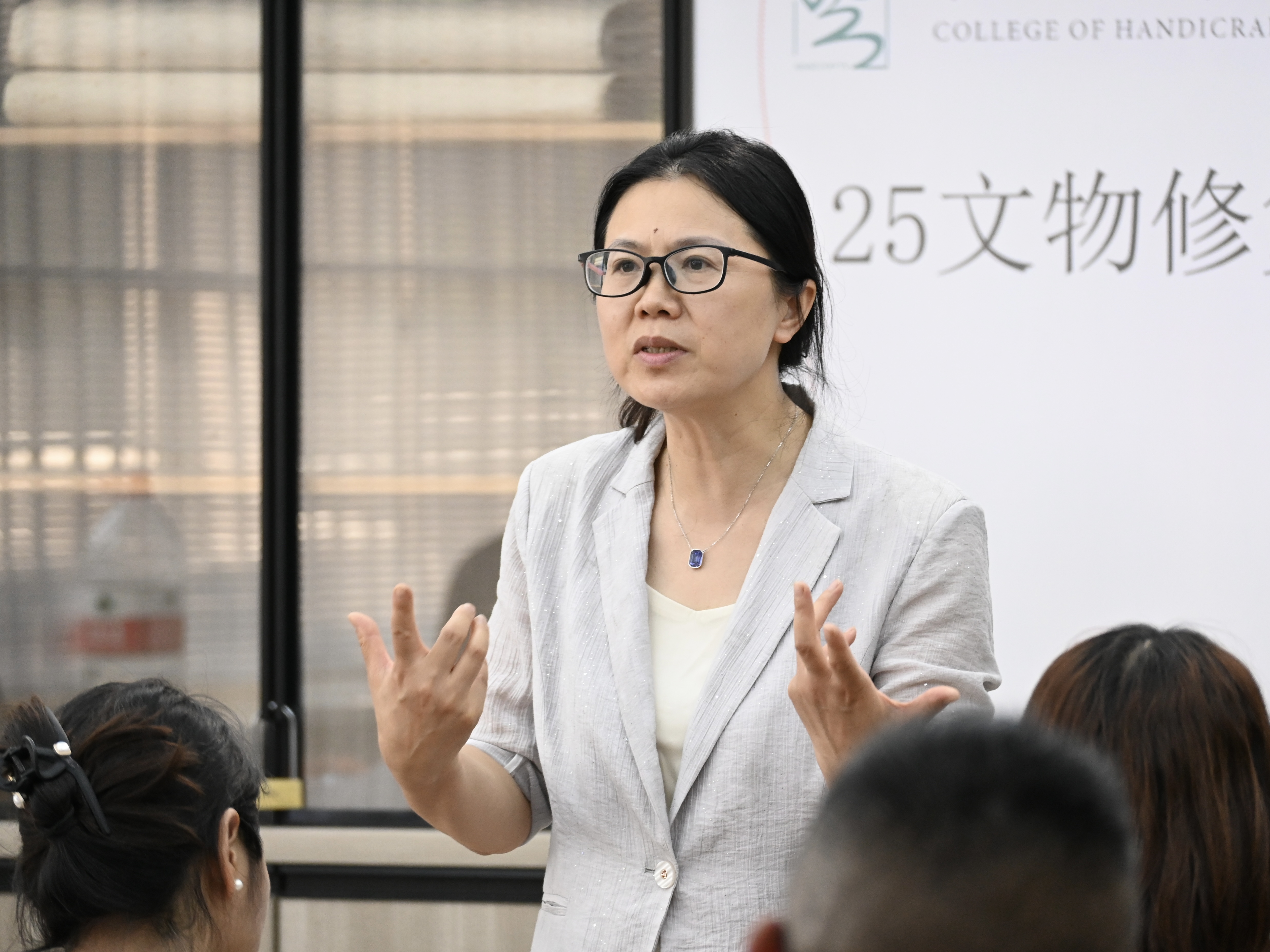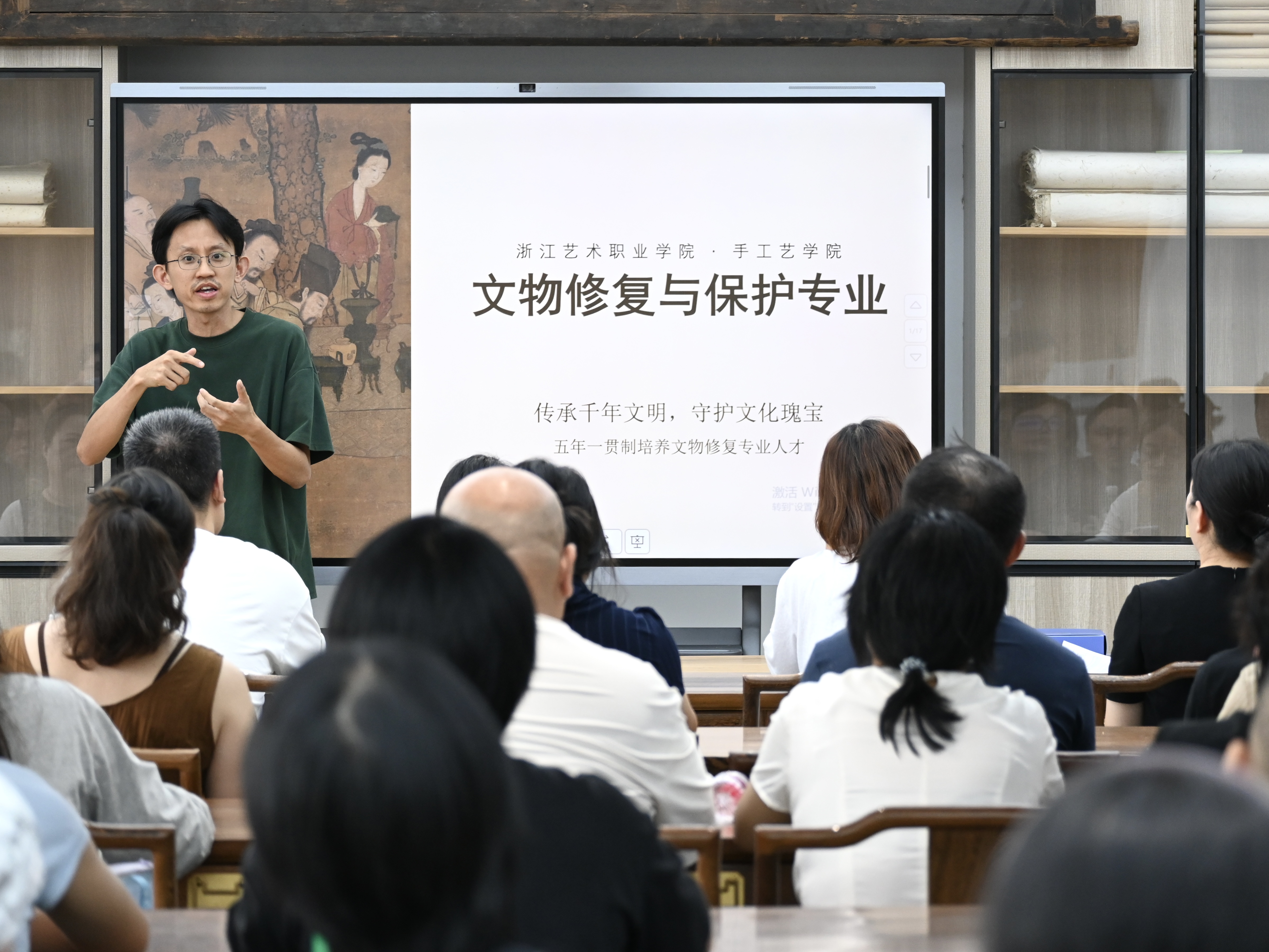 文物修复与保护教研室主任林维业结合文物修复与保护专业前沿动态与行业趋势,围绕专业发展方向和人才培养方案,介绍了专业课程和实践课程,剖析了学生未来的学习重并点明长远规划发展的重要性。