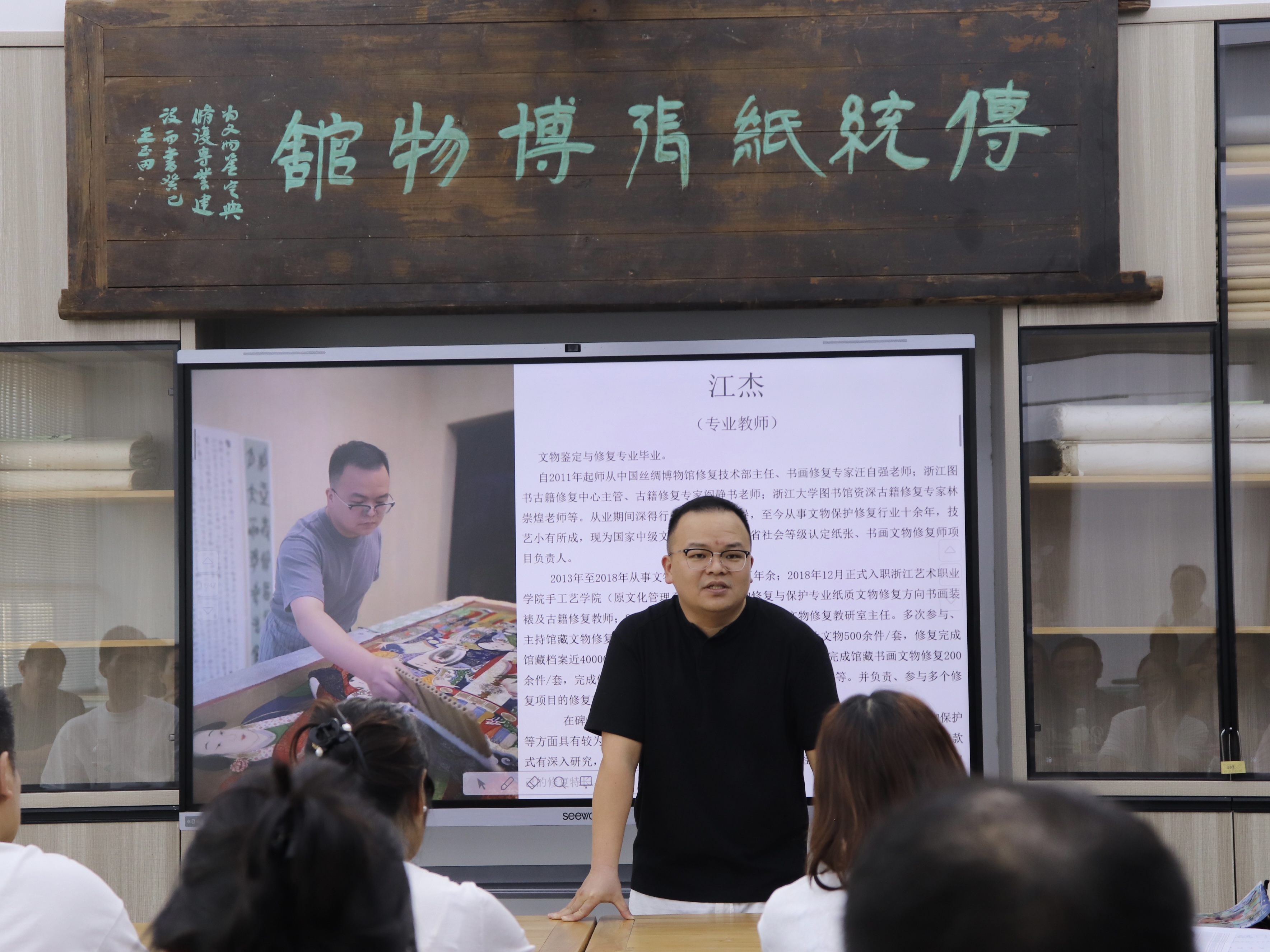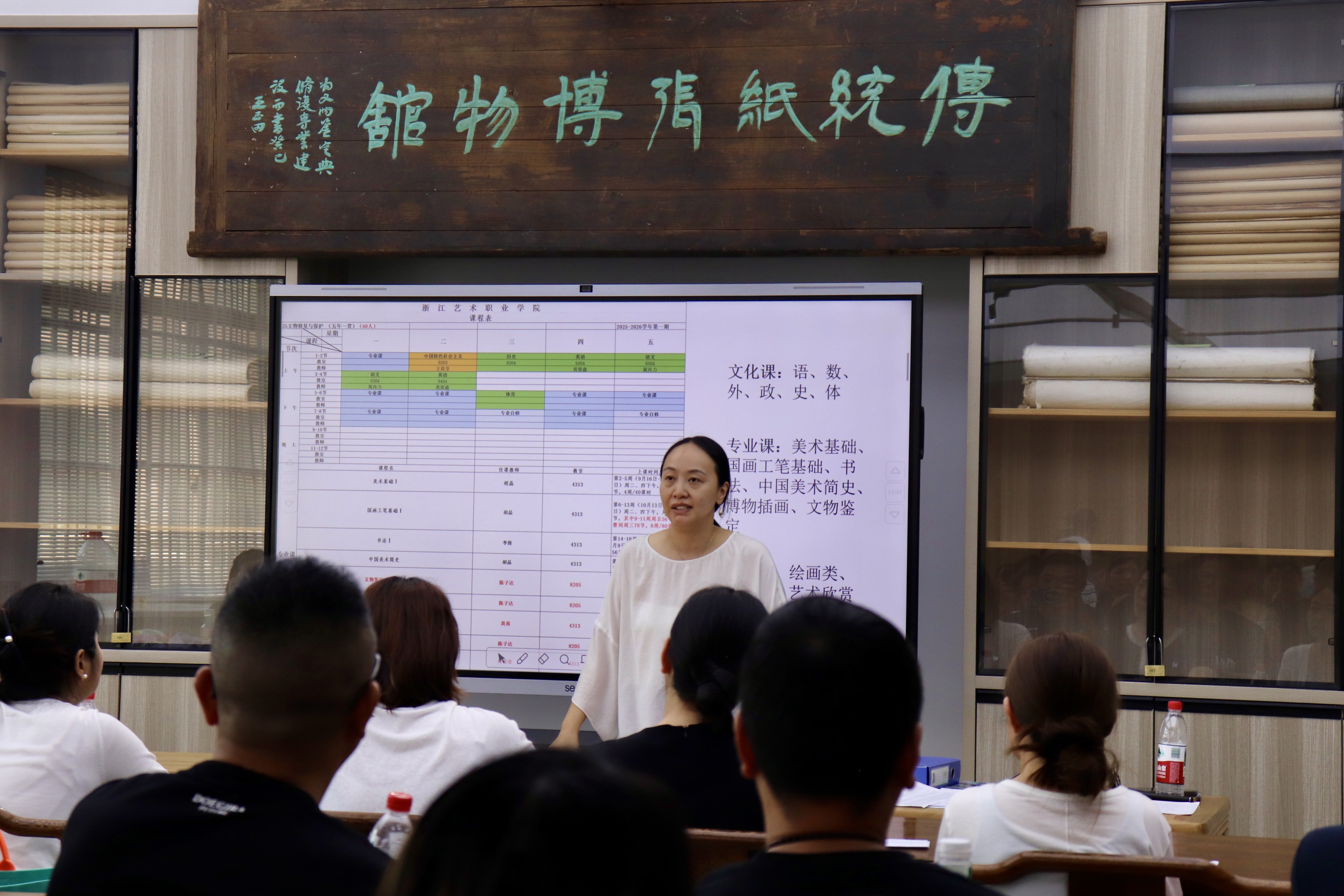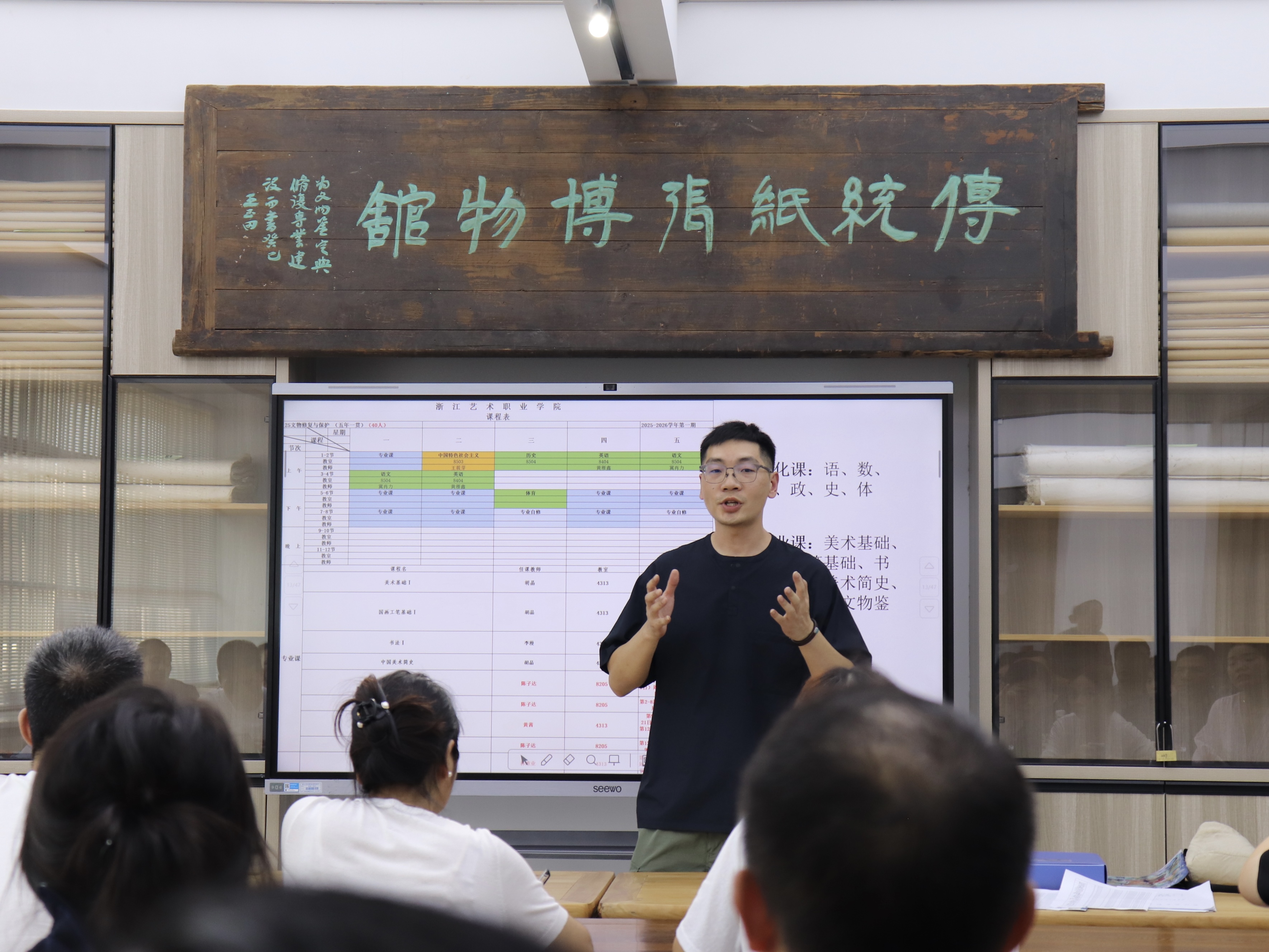 文物修复与保护教研室教师李漫、胡晶、江杰依次登台,分享了个人教学经历与特色,并送上真挚的新生寄语,既有对学业的殷切期望,也有对成长的暖心祝福。