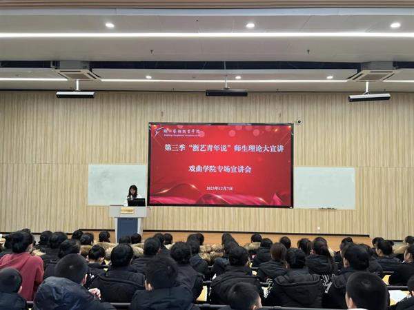 12月7日中午,由校党委宣传部、马克思主义学院、校团委联合主办的第三季浙艺青年说师生理论大宣讲戏曲学院专场顺利举行。戏曲学院党总支书记谢志勇和全体学生参加,戏曲学院团总支书记余鑫雨主持。