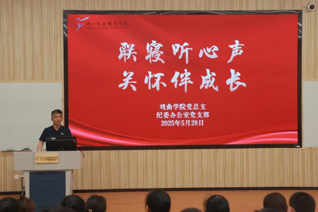5月28日,戏曲学院党总支和纪委办公室党支部共同开展干部和党员联系学生寝室活动,启动仪式在阶梯一教室举行。校党委委员、纪委书记沈军甫,戏曲学院、校纪委办公室全体干部、党员及戏曲学院全体学生共同参与活动。
