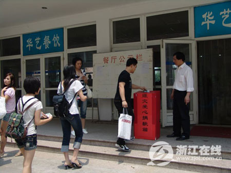 浙江在线·教育频道5月15日讯(通讯员 楚苎)今天中午,浙江艺术职业学院食堂门口,一个大红的捐款箱赫然在目,两旁边人潮络绎不绝。学院领导来了,中层干部来了,各系部教师和职能处室的教职员工来了,各系部学生来了。一个个沉甸甸的信封里装着一颗颗滚烫的心,一句句朴实的话语汇聚成了一股股暖流。一方有难,八方支援;万众一心,众志成城。