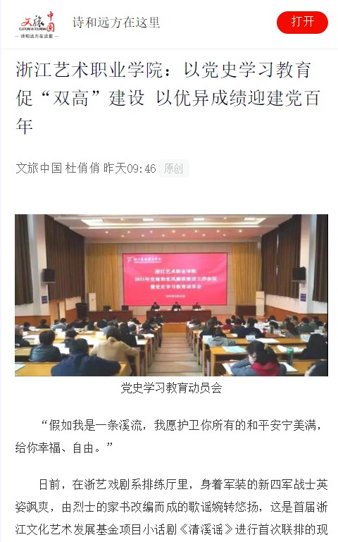 文旅中国:浙江艺术职业学院:以党史学习教育促“双高”建设 以优异成绩迎建党百年