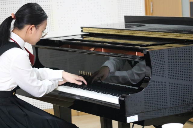 音乐表演(器乐)考场,各类乐器琳琅满目,古筝、二胡、琵琶、笛子、柳琴……乐声有时如淌过草丛的小溪,有时如石缝漏下的滴泉,有时如飞瀑落下深潭,考官们在休息时候私下点评:"这批孩子基础都不错。"