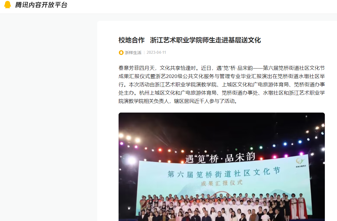 腾讯新闻:校地合作 浙江艺术职业学院师生走进基层送文化
