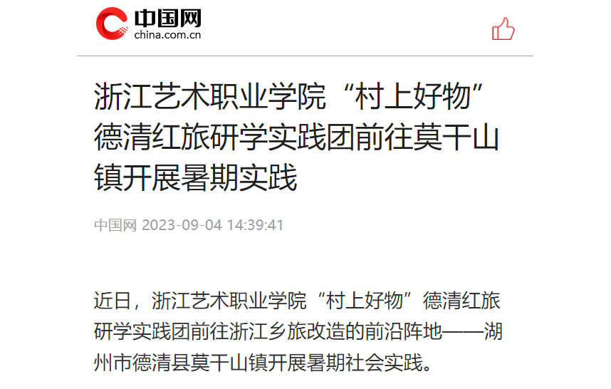 中国网:浙江艺术职业学院“村上好物”德清红旅研学实践团前往莫干山镇开展暑期实践