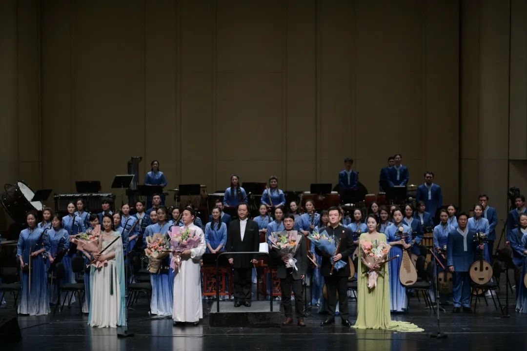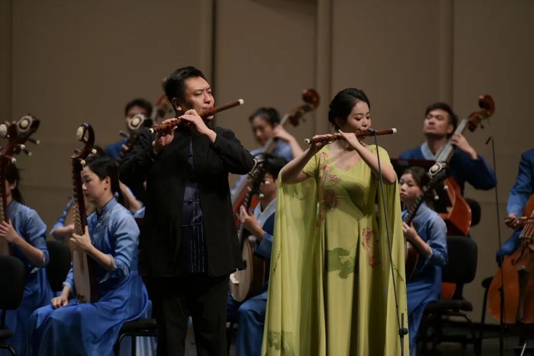 伴随着气势恢宏的民族管弦乐《貂蝉》的奏响,音乐会拉开了帷幕。随后,笛子协奏曲《长生殿·写意》《西施》《王昭君》一一演奏,为观众带来听觉盛宴。晚会最后,赵松庭先生的嫡传弟子吴樟华,携手王华、马云鹤、熊箫涵为观众献上一曲笛子齐奏《幽兰逢春》,用笛声缅怀恩师的栽培之恩。