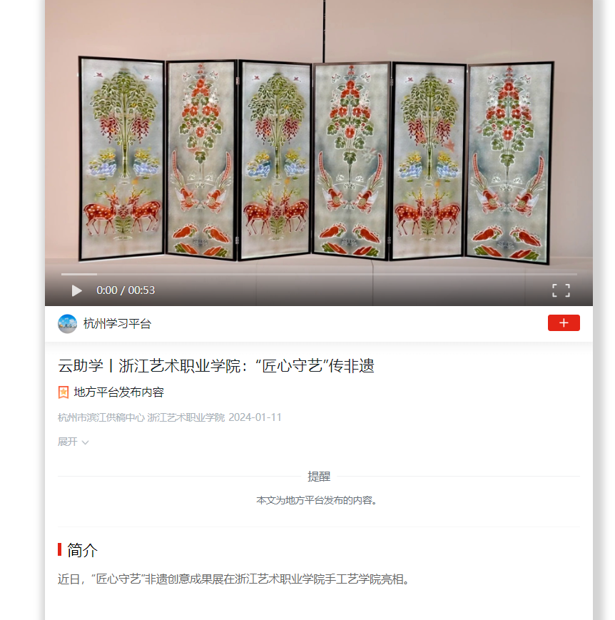 学习强国杭州平台:云助学丨浙江艺术职业学院:“匠心守艺”传非遗