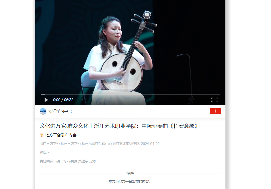 学习强国浙江平台:文化进万家·群众文化丨浙江艺术职业学院:中阮协奏曲《长安意象》