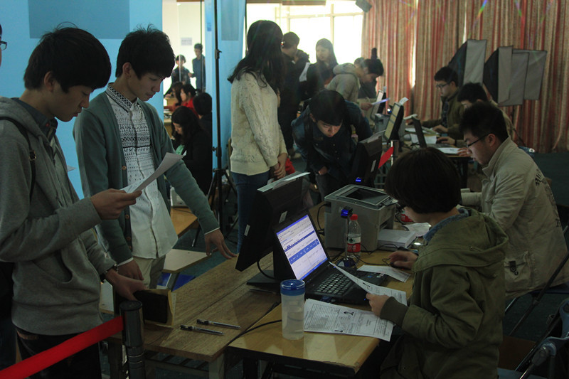 从4月4日上午一直到今天的两天时间,1号楼大厅内,负责考试报考录入的工作人员十分认真仔细地核对着每个考生的资料,并帮助考生顺利填报志愿。