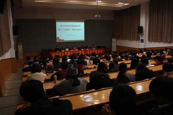 11月17日晚,影视技术系第十二次团总支、学生会双代会在图信中心举行。系党总支副书记彭云波、组织员张永华、院团委专职副书记郑吟和影视技术系师生等出席会议。