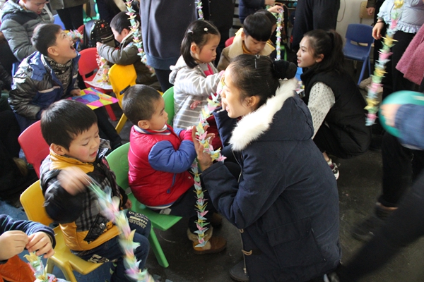 康复中心墙上挂着一个太阳标志、一颗爱心、一双手和一株小草,简洁明了地诠释了阳光、爱心、帮助和成长。康复中心工作人员简单介绍了这群特殊的小朋友:“他们是一群患有自闭症的儿童,在社会生存中需要更多的理解和关爱。我们所倡导的,不是为了消灭,而是为了共存。”同学们的热情感染了小朋友,在为他们表演的时候他们也跟着音乐左右摇摆,乐此不疲地跟着跳舞。最后,当同学们将精心准备的图画、千纸鹤、食物送给他们时,他们的脸上洋溢出幸福笑容。在即将离开时,听到他们小声说:“姐姐,谢谢你!”、“我舍不得你走......”的话语,令现场同学留下感动的泪水。