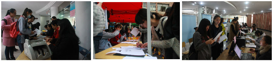 一大早,学生服务大厅的门口就排起长长的队伍,报名确认工作紧张而又忙碌地进行着。