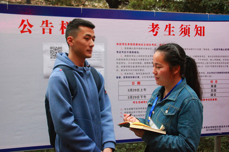 家长总比孩子紧张。孩子排队时,家长便在公告栏前认真阅读明天考试的注意事项,有些家长还特定熟悉下校园环境。记者了解到,家长们十分支持孩子学习艺术,也希望未来能从事艺术行业。