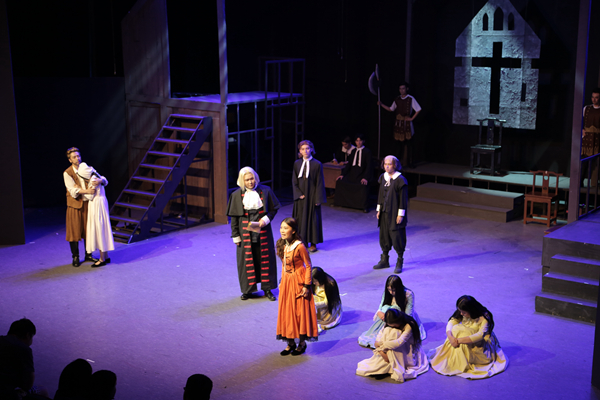 《萨拉姆的女巫》由四幕构成,为了使演员更充分感受该剧的历史背景及民族特点,每幕由剧中角色担任分幕导演,再由总导演史昕进行指导编改组合,努力展现人物思想、感情的层层“褶皱”,着重于闪现人性的光辉。值得一提的是,为提高精致程度,该剧服装得到学生家长的相助,舞美设计和灯光得到了学院美术系教师李昌国、叶文志和他们学生团队的相助。通过排练、演出,同学们的能力得到了全面提升。