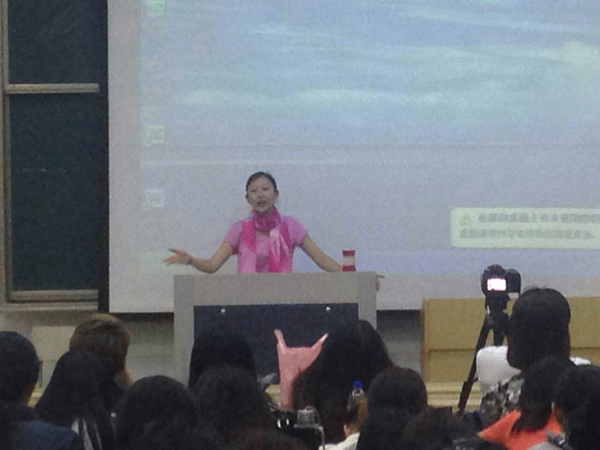 讲座开始,周瑾让同学们全部放下手机,告诉大家:拿得起,须放得下,不能被手机支配。以此引出她所要讲的“个性”这一主题。周瑾以自身经历告诉大家:拿得起、放得下的是个性,对自己有帮助的个性是好的个性,个性是用来提升自我价值的。