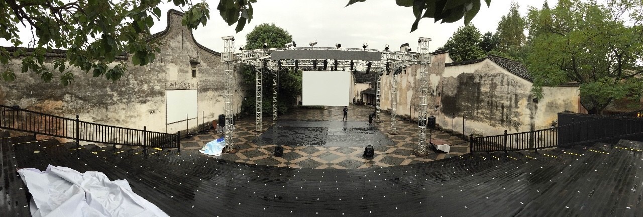 日月广场舞台演出地点在日月广场,由于第二天就是首演,于是在到达乌镇的当天下午,师生们便投入了紧张的排练。为了将自己最好的一面呈现给观众,大家保持了高昂的热情,使得联排一遍比一遍出色。演出前,所有演员就位,一起握手,共同加油。从走上台的那一刻起,同学们尽情享受着舞台,并以出色表现获得了剧目组的好评和观众的热烈掌声,同学们觉得,此前所有的辛苦和努力都是值得的。首演成功,令同学们倍感激动和喜悦。回到休息室后,首演庆功宴早已布置好。更让同学们振奋的是,赖声川导演也特地赶来,跟剧组成员一起合影、举杯,同贺首演成功。赖声川导演对首演成功表示祝贺,《李尔王》的导演窦辉向赖导介绍了剧组所有成员,对浙江艺术职业学院表演艺术专业加盟这次演出表示感谢,对同学们在排练中的敬业态度和在舞台上的出色表现表示赞赏。